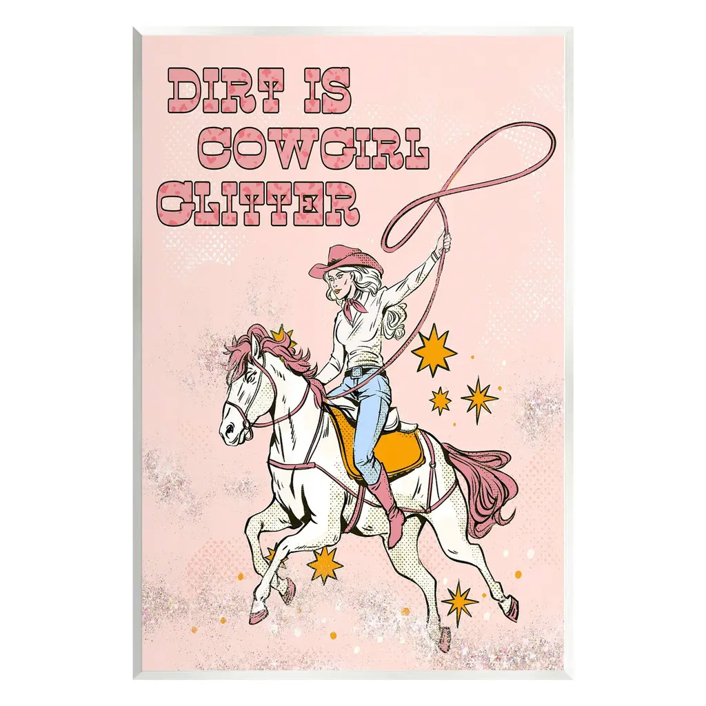 Add dimension to any room with our textured Framed Giclee Artwork. Our framed artwork is securely mounted into a 1.5-inch thick wood grain frame and ready to hang. Frames are available in three alluring styles: black, gray farmhouse and white. In addition, you should check out our oversized options if you want a statement piece. Stupell Wall Art is made in the USA.Features: Dimensions: 11 x 1.5 x 14 FramedFramed Giclee Products are available in the sizes 11"x14", 16"x20" or 24"x30". All Framed Giclee Products have a 1.5" Depth. Wall Art is Ready to Hang with Hardware Free Hanging. No installation required. For Easy Set Up Lean or Layer Artwork on Shelf or Against Wall.Our giclée prints are carefully mounted on a durable MDF backing, and then perfectly finished in a 1.5 inch thick woodgrain frame. Mounted frame colors include black, gray farmhouse and white. Made In USA.Artwork Relates To: Equestrian, Rodeo, Country, Southwestern, Cowgirl, Animal, Horse, Racing, Galloping, Vintage, Dirt is Cowgirl GlitterDesign by Ziwei Li