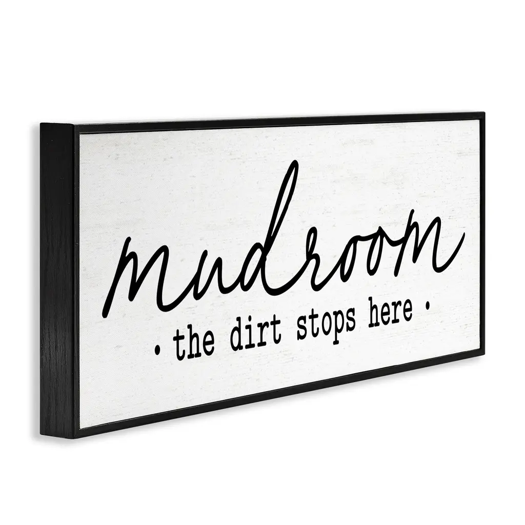 Stupell Dirt Stops Here Mudroom Sign Rustic Grain Pattern Framed Wall Art, Design By Lettered And Lined - White - 30 X 13 - Black
