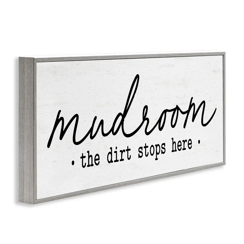 Stupell Dirt Stops Here Mudroom Sign Rustic Grain Pattern Framed Wall Art, Design By Lettered And Lined - White - 30 X 13 - Grey