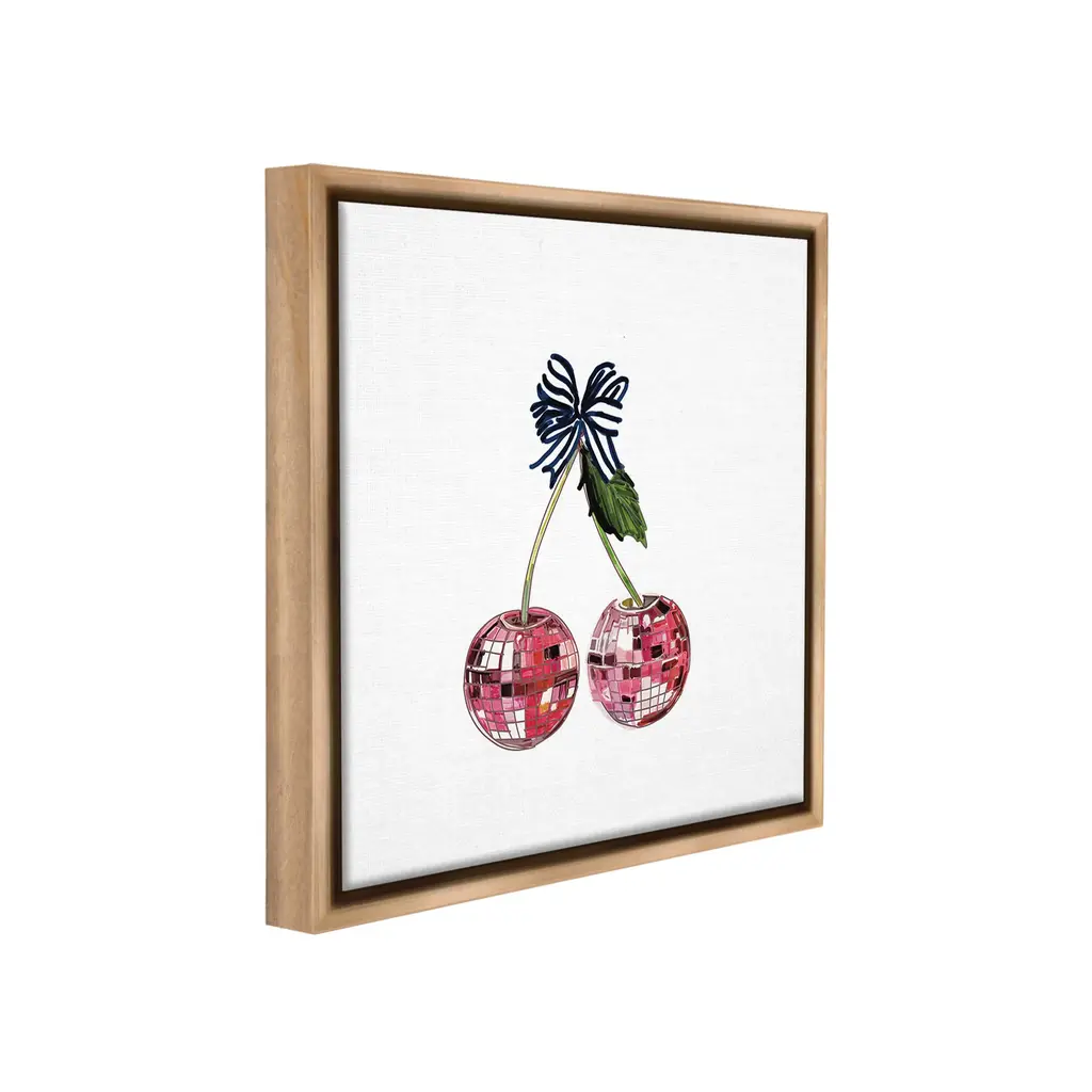 Elevate your home or office to the next level with Stupell Framed Floating Canvas Wall Art. Our premium hand-stretched canvas is mounted securely into a sturdy lightweight frame. The museum-style gap between the wrapped canvas and the box frame gives the illusion of floating artwork. Stupell Wall Art is made in the USA.Features: Dimensions: 18 x 1.7 x 18 Frame, 17 x 1.5 x 17 Canvas ArtFloating Frame Canvas Products are available in sizes 18"x18" and 25"x25". All Floating Frame Canvas Products have a 1.7" Depth.Wall Art is Ready to Hang with Hardware Free Hanging. No Installation required. For Easy Set Up Lean or Layer Artwork on Shelf or Against Wall. Artwork is Permently Fixed into the Frame.Our elevated 1.7" Thick Floating Frame is the perfect complement to our canvas style Wall Art. We use only the highest quality inks in house with industry leading printing solutions. Canvas is hand stretched over a durable wood foundation and then mounted securly into a Modern Box Frame. Made in the USA.Artwork Relates To: Dance, Music, Disco, Pattern, Fruit, Cherry, Geometric, GlamDesign by Amelia Noyes