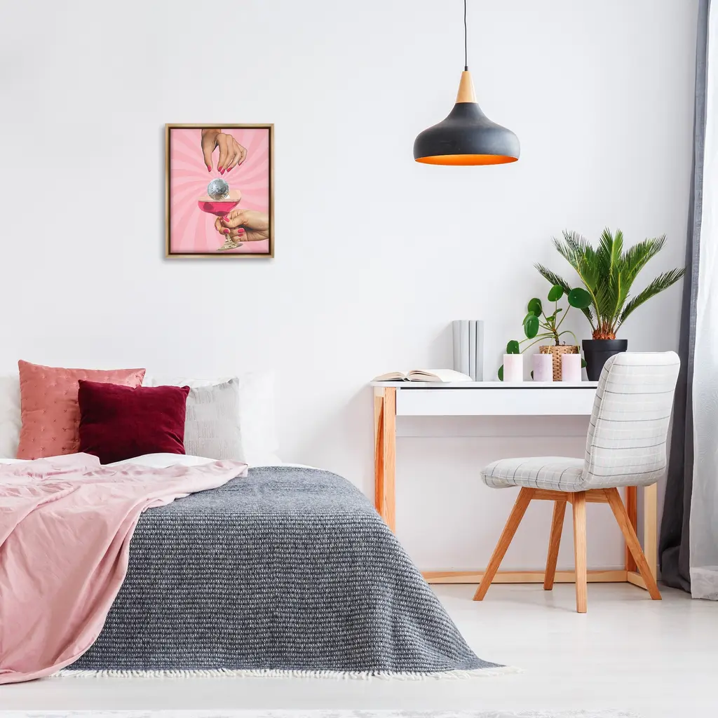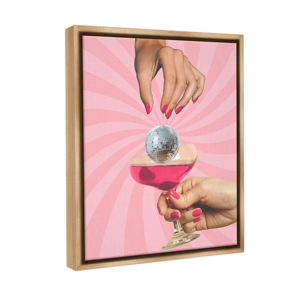 Elevate your home or office to the next level with Stupell Framed Floating Canvas Wall Art. Our premium hand-stretched canvas is mounted securely into a sturdy lightweight frame. The museum-style gap between the wrapped canvas and the box frame gives the illusion of floating artwork. Stupell Wall Art is made in the USA.Features: Dimensions: 17 x 1.7 x 21 Frame, 16 x 1.5 x 20 Canvas ArtFloating Frame Canvas Products are available in sizes 17"x21" and 25"x31". All Floating Frame Canvas Products have a 1.7" Depth.Wall Art is Ready to Hang with Hardware Free Hanging. No Installation required. For Easy Set Up Lean or Layer Artwork on Shelf or Against Wall. Artwork is Permently Fixed into the Frame.Our elevated 1.7" Thick Floating Frame is the perfect complement to our canvas style Wall Art. We use only the highest quality inks in house with industry leading printing solutions. Canvas is hand stretched over a durable wood foundation and then mounted securly into a Modern Box Frame. Made in the USA.Artwork Relates To: Dance, Music, Disco, Pattern, Abstract, Shape, Modern, Glam, Person, Hand, Cocktail, MartiniDesign by Lil' Rue
