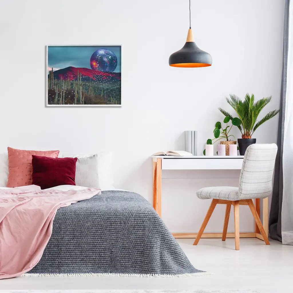 Stupell Disco Ball In Desert Framed Giclee Art Design By Lil' Rue - 30 X 24 - White
