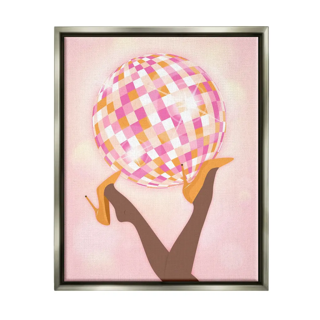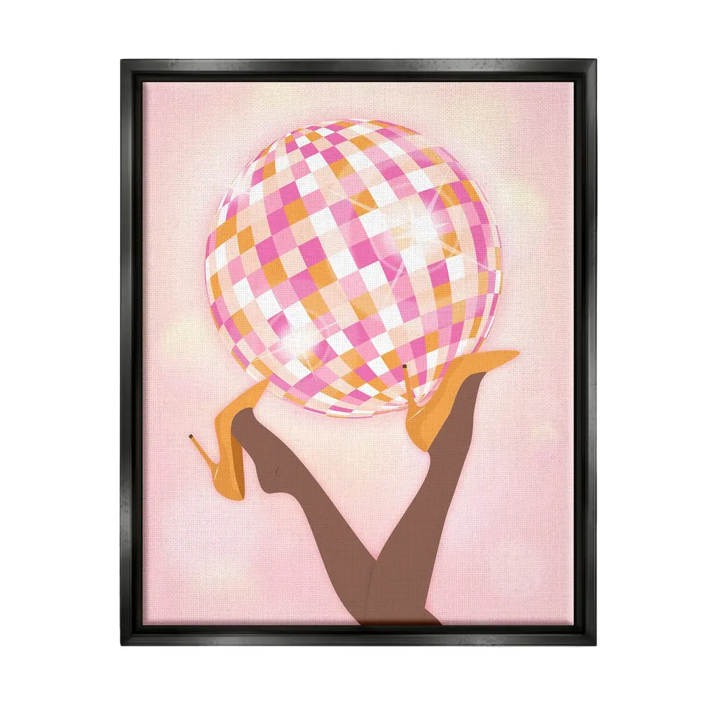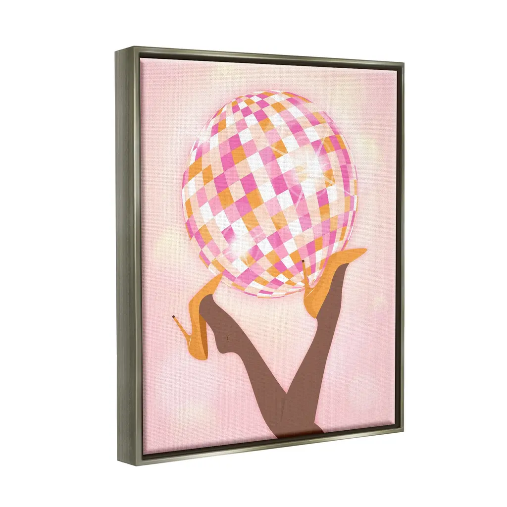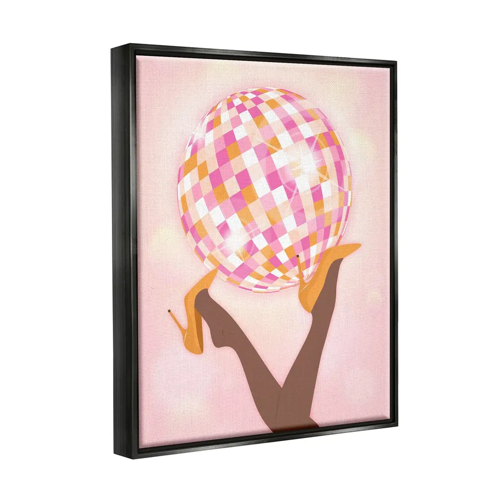 Elevate your home or office to the next level with Stupell Framed Floating Canvas Wall Art. Our premium hand-stretched canvas is mounted securely into a sturdy lightweight frame. The museum-style gap between the wrapped canvas and the box frame gives the illusion of floating artwork. Stupell Wall Art is made in the USA.Features: Dimensions: 17 x 1.7 x 21 Frame, 16 x 1.5 x 20 Canvas ArtFloating Frame Sizes Include Standard: 17 x 1.7 x 21 Oversized: 25 x 1.7 x 31Wall Art is Ready to Hang - No Installation or Hardware Needed. For Easy Set Up Lean or Layer Artwork on Shelf or Against Wall.Our elevated 1.7" Thick Floating Frame is the perfect complement to our canvas style Wall Art. We use only the highest quality inks in house with industry leading printing solutions. Canvas is hand stretched over a durable wood foundation and then mounted securly into a Modern Box Frame. Made in the USA.Artwork Relates To: Disco Ball, Retro, Bold, High HeelsDesign by Martina Pavlova
