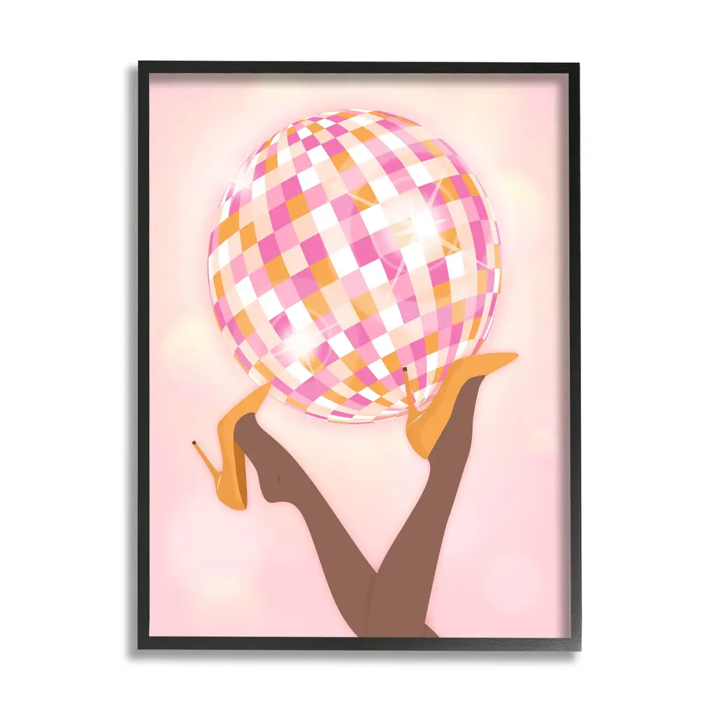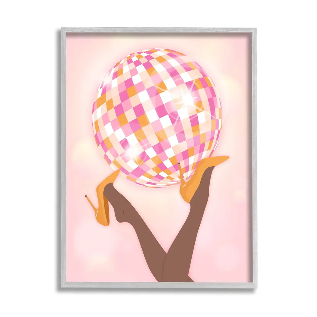 Add dimension to any room with our textured Framed Giclee Artwork. Our framed artwork is securely mounted into a 1.5-inch thick wood grain frame and ready to hang. Frames are available in three alluring styles: black, gray farmhouse and white. In addition, you should check out our oversized options if you want a statement piece. Stupell Wall Art is made in the USA.Features: Dimensions: 11 x 1.5 x 14 FramedFramed Giclee Sizes Include Standard: 11 x 1.5 x 14 Large: 16 x 1.5 x 20 Oversized: 24 x 1.5 x 30Wall Art is Ready to Hang - No Installation or Hardware Needed. For Easy Set Up Lean or Layer Artwork on Shelf or Against Wall.Our giclée prints are carefully mounted on a durable MDF backing, and then perfectly finished in a 1.5 inch thick woodgrain frame. Mounted frame colors include black, gray farmhouse and white. Made In USA.Artwork Relates To: Disco Ball, Retro, Bold, High HeelsDesign by Martina Pavlova