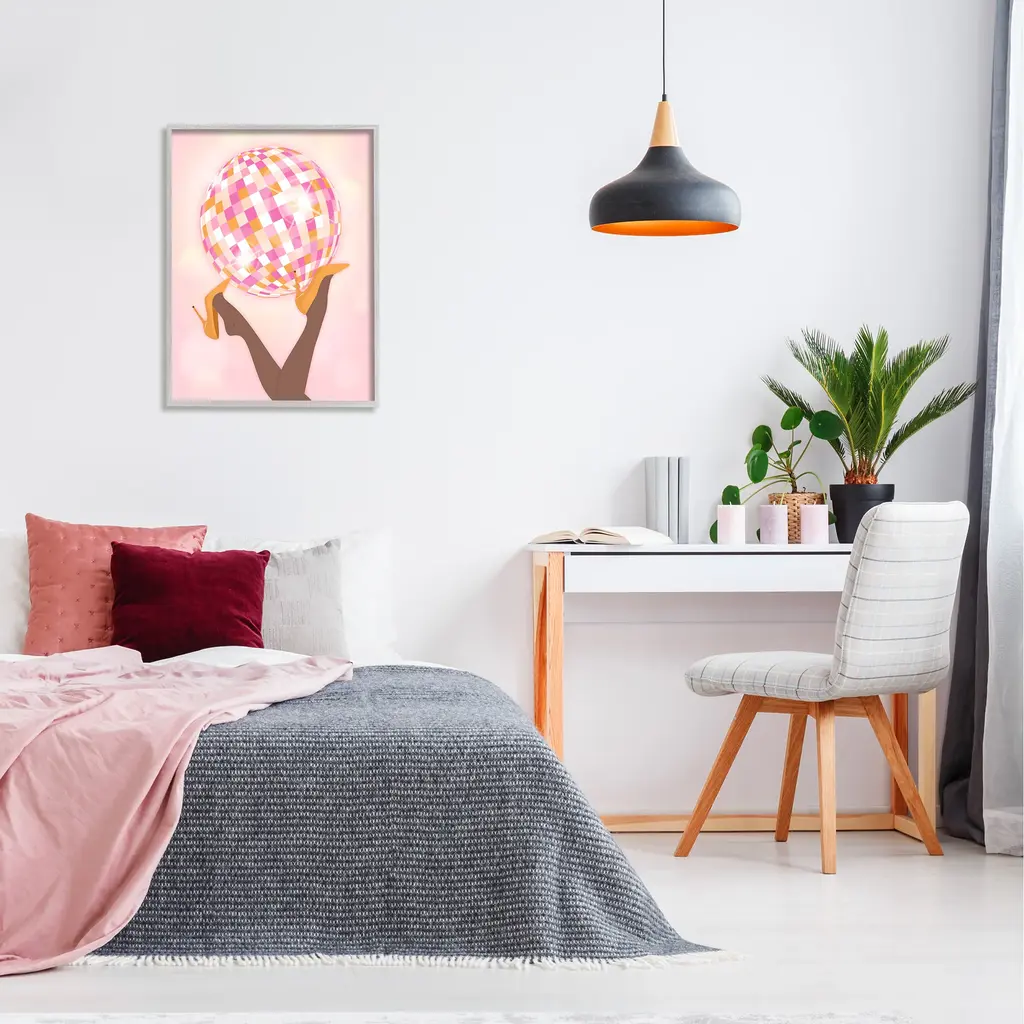 Add dimension to any room with our textured Framed Giclee Artwork. Our framed artwork is securely mounted into a 1.5-inch thick wood grain frame and ready to hang. Frames are available in three alluring styles: black, gray farmhouse and white. In addition, you should check out our oversized options if you want a statement piece. Stupell Wall Art is made in the USA.Features: Dimensions: 11 x 1.5 x 14 FramedFramed Giclee Sizes Include Standard: 11 x 1.5 x 14 Large: 16 x 1.5 x 20 Oversized: 24 x 1.5 x 30Wall Art is Ready to Hang - No Installation or Hardware Needed. For Easy Set Up Lean or Layer Artwork on Shelf or Against Wall.Our giclée prints are carefully mounted on a durable MDF backing, and then perfectly finished in a 1.5 inch thick woodgrain frame. Mounted frame colors include black, gray farmhouse and white. Made In USA.Artwork Relates To: Disco Ball, Retro, Bold, High HeelsDesign by Martina Pavlova
