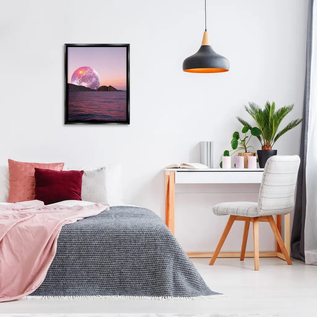 Stupell Disco Ball Sunset Framed Floater Canvas Wall Art Design By Lil' Rue - 25 X 31 - Black