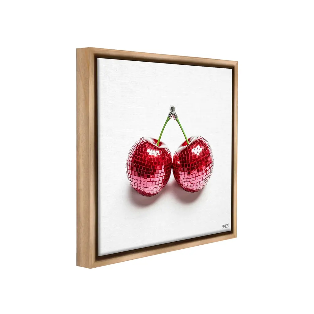 Elevate your home or office to the next level with Stupell Framed Floating Canvas Wall Art. Our premium hand-stretched canvas is mounted securely into a sturdy lightweight frame. The museum-style gap between the wrapped canvas and the box frame gives the illusion of floating artwork. Stupell Wall Art is made in the USA.Features: Dimensions: 18 x 1.7 x 18 Frame, 17 x 1.5 x 17 Canvas ArtFloating Frame Canvas Products are available in sizes 18"x18" and 25"x25". All Floating Frame Canvas Products have a 1.7" Depth.Wall Art is Ready to Hang with Hardware Free Hanging. No Installation required. For Easy Set Up Lean or Layer Artwork on Shelf or Against Wall. Artwork is Permently Fixed into the Frame.Our elevated 1.7" Thick Floating Frame is the perfect complement to our canvas style Wall Art. We use only the highest quality inks in house with industry leading printing solutions. Canvas is hand stretched over a durable wood foundation and then mounted securly into a Modern Box Frame. Made in the USA.Artwork Relates To: Dance, Music, Disco, Pattern, Abstract, Shape, Modern, Glam, Cherry, FruitDesign by RB