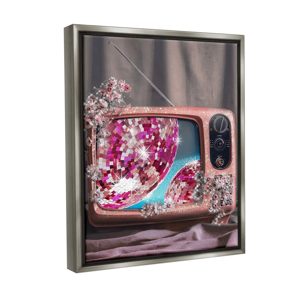 Stupell Disco Vintage Television Framed Floater Canvas Wall Art Design By Ziwei Li - 17 X 21 - Grey