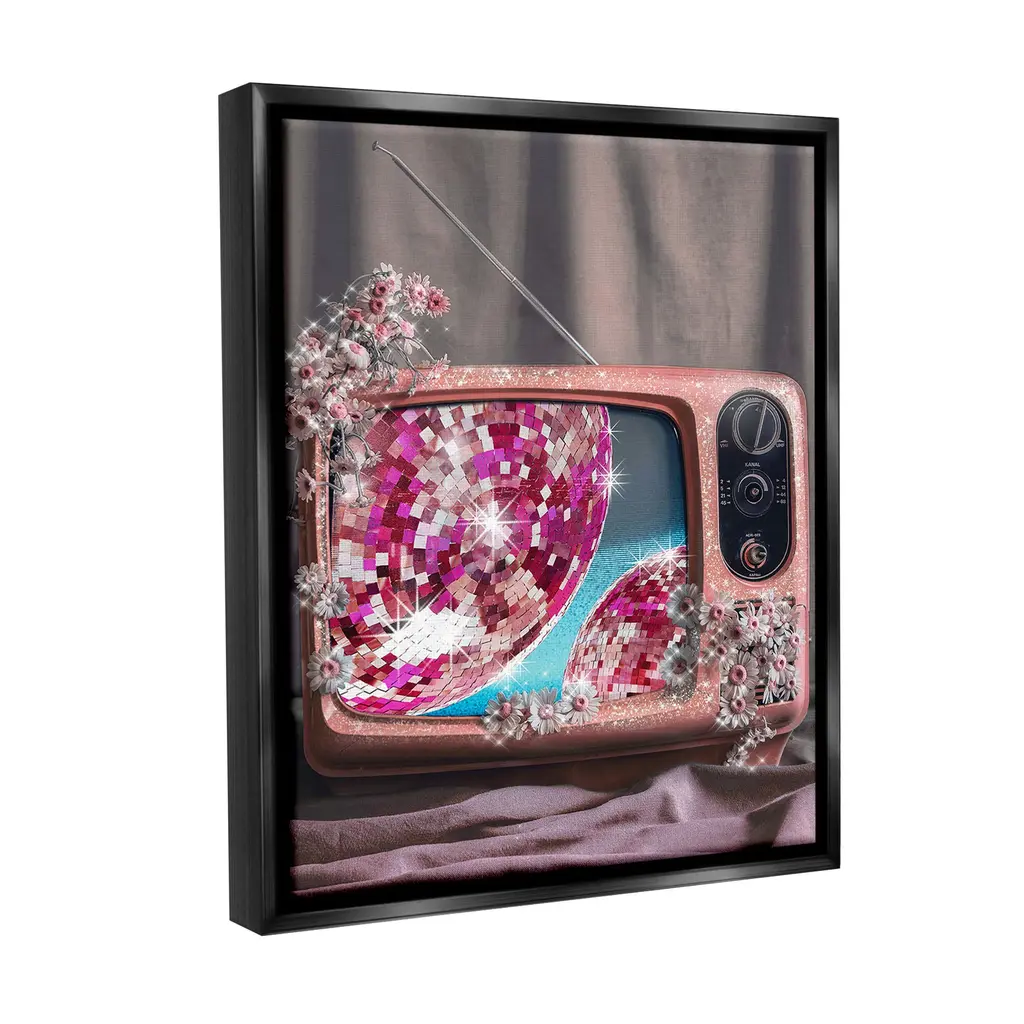 Stupell Disco Vintage Television Framed Floater Canvas Wall Art Design By Ziwei Li - 25 X 31 - Black