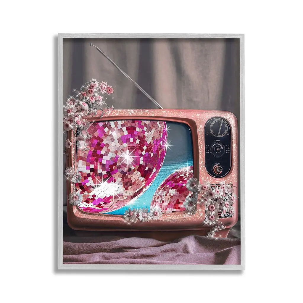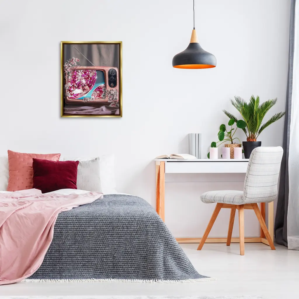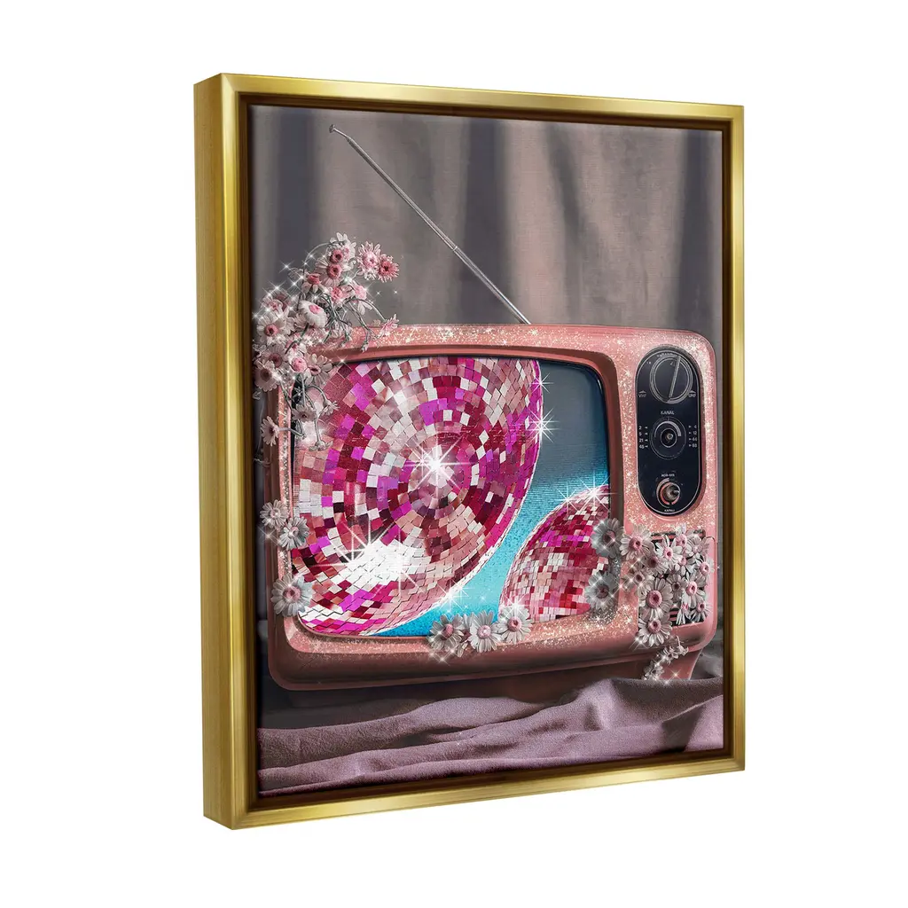 Stupell Disco Vintage Television Framed Floater Canvas Wall Art Design By Ziwei Li - 25 X 31 - Gold