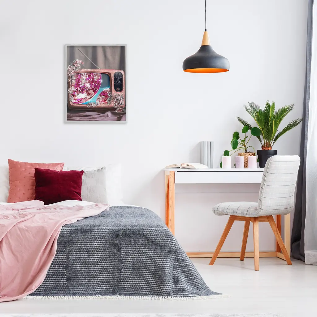 Add dimension to any room with our textured Framed Giclee Artwork. Our framed artwork is securely mounted into a 1.5-inch thick wood grain frame and ready to hang. Frames are available in three alluring styles: black, gray farmhouse and white. In addition, you should check out our oversized options if you want a statement piece. Stupell Wall Art is made in the USA.Features: Dimensions: 11 x 1.5 x 14 FramedFramed Giclee Products are available in the sizes 11"x14", 16"x20" or 24"x30". All Framed Giclee Products have a 1.5" Depth. Wall Art is Ready to Hang with Hardware Free Hanging. No installation required. For Easy Set Up Lean or Layer Artwork on Shelf or Against Wall.Our giclée prints are carefully mounted on a durable MDF backing, and then perfectly finished in a 1.5 inch thick woodgrain frame. Mounted frame colors include black, gray farmhouse and white. Made In USA.Artwork Relates To: Dance, Music, Disco, Pattern, Abstract, Shape, Modern, Glam, Vintage, TVDesign by Ziwei Li