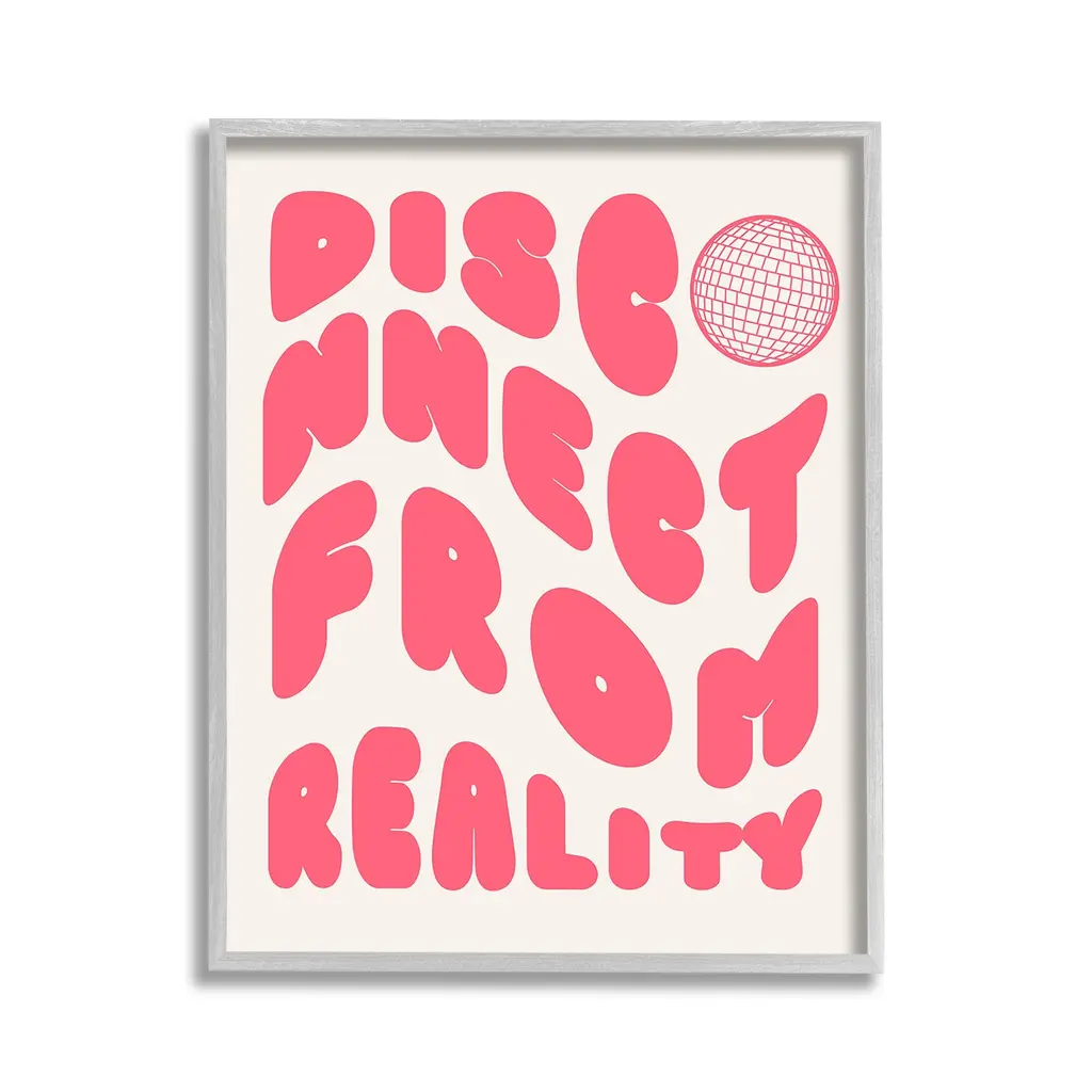 Add dimension to any room with our textured Framed Giclee Artwork. Our framed artwork is securely mounted into a 1.5-inch thick wood grain frame and ready to hang. Frames are available in three alluring styles: black, gray farmhouse and white. In addition, you should check out our oversized options if you want a statement piece. Stupell Wall Art is made in the USA.Features: Dimensions: 11 x 1.5 x 14 FramedFramed Giclee Products are available in the sizes 11"x14", 16"x20" or 24"x30". All Framed Giclee Products have a 1.5" Depth. Wall Art is Ready to Hang with Hardware Free Hanging. No installation required. For Easy Set Up Lean or Layer Artwork on Shelf or Against Wall.Our giclée prints are carefully mounted on a durable MDF backing, and then perfectly finished in a 1.5 inch thick woodgrain frame. Mounted frame colors include black, gray farmhouse and white. Made In USA.Artwork Relates To: Phrase, Retro, Groovy, Inspirational, Disconnect From Reality, Disco BallDesign by Lil' Rue