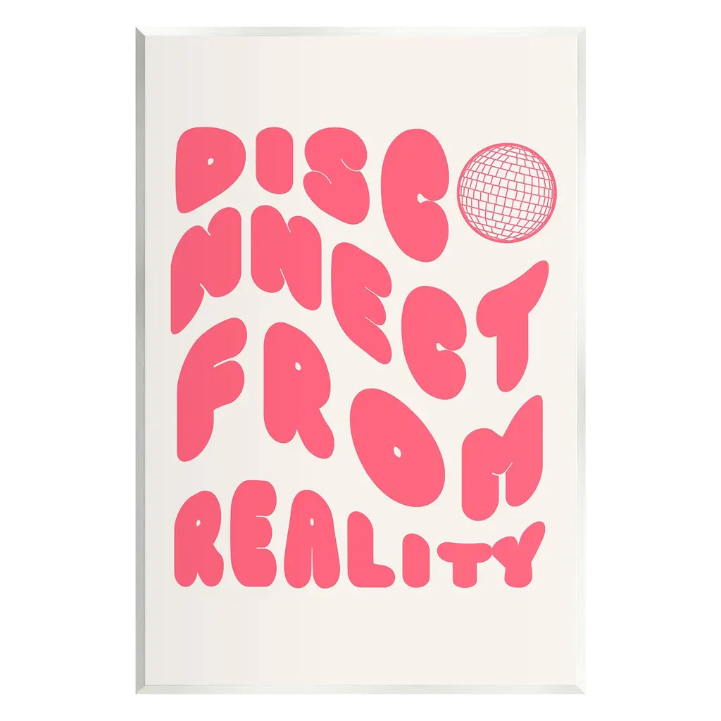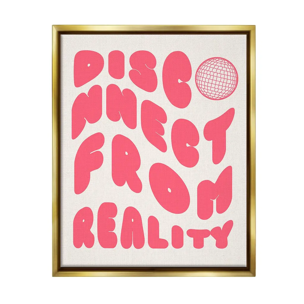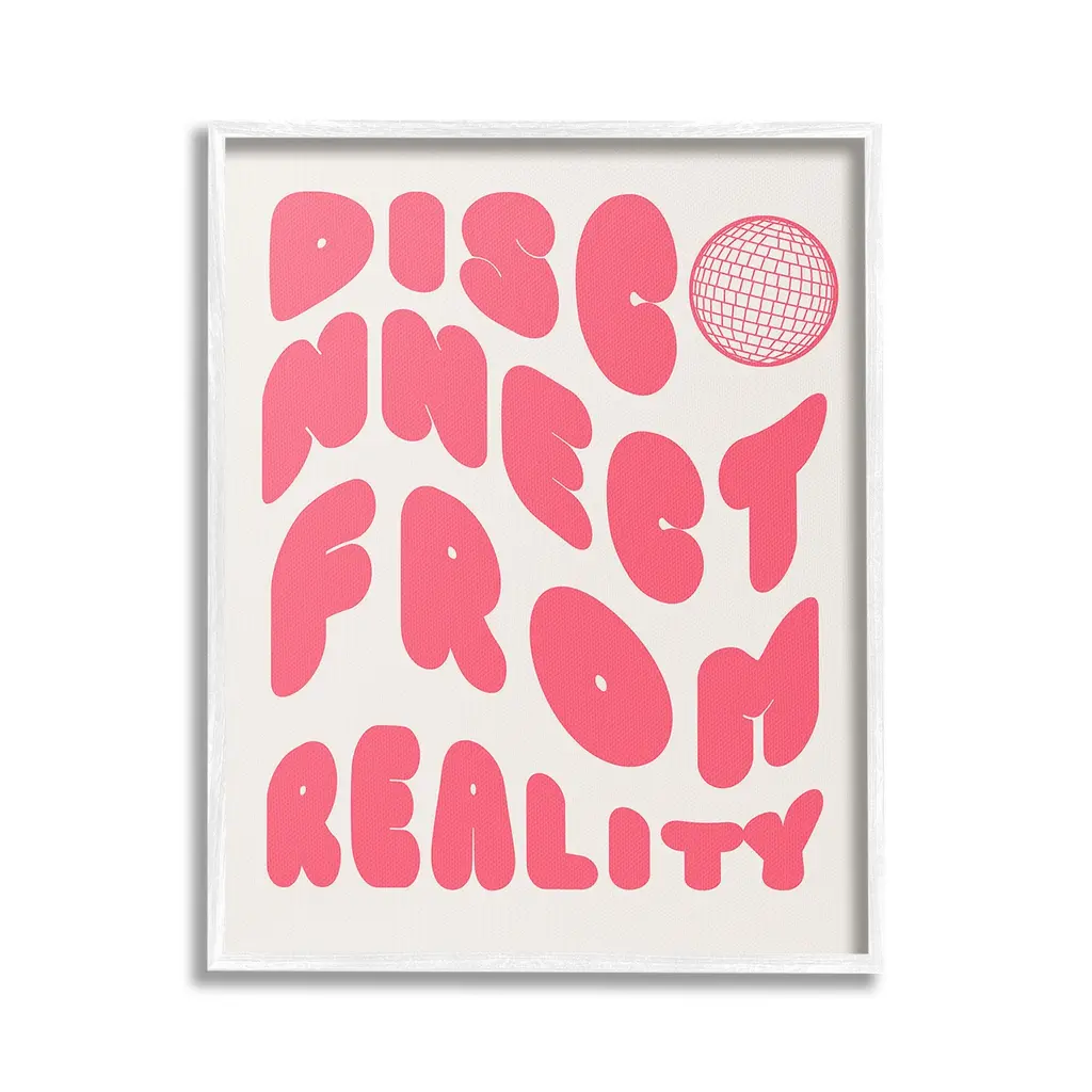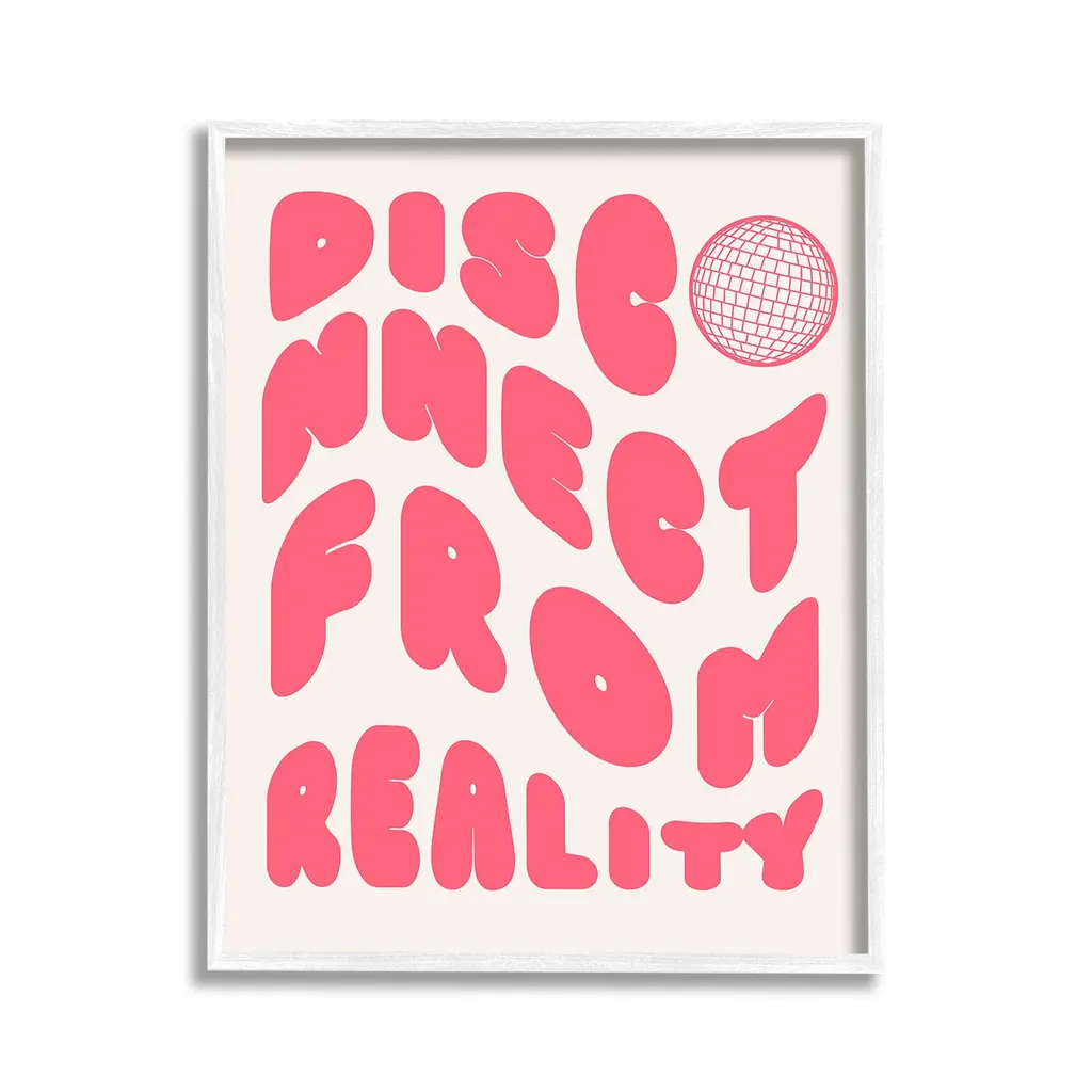 Add dimension to any room with our textured Framed Giclee Artwork. Our framed artwork is securely mounted into a 1.5-inch thick wood grain frame and ready to hang. Frames are available in three alluring styles: black, gray farmhouse and white. In addition, you should check out our oversized options if you want a statement piece. Stupell Wall Art is made in the USA.Features: Dimensions: 11 x 1.5 x 14 FramedFramed Giclee Products are available in the sizes 11"x14", 16"x20" or 24"x30". All Framed Giclee Products have a 1.5" Depth. Wall Art is Ready to Hang with Hardware Free Hanging. No installation required. For Easy Set Up Lean or Layer Artwork on Shelf or Against Wall.Our giclée prints are carefully mounted on a durable MDF backing, and then perfectly finished in a 1.5 inch thick woodgrain frame. Mounted frame colors include black, gray farmhouse and white. Made In USA.Artwork Relates To: Phrase, Retro, Groovy, Inspirational, Disconnect From Reality, Disco BallDesign by Lil' Rue