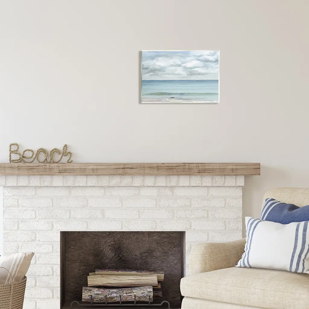 Stupell Distant Sailboat Cloudy Shore Wall Plaque Art Design By Ramona Murdock - 15 X 10