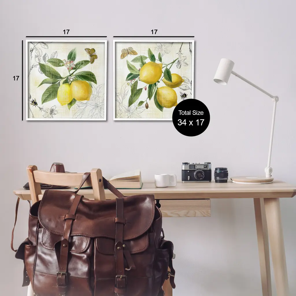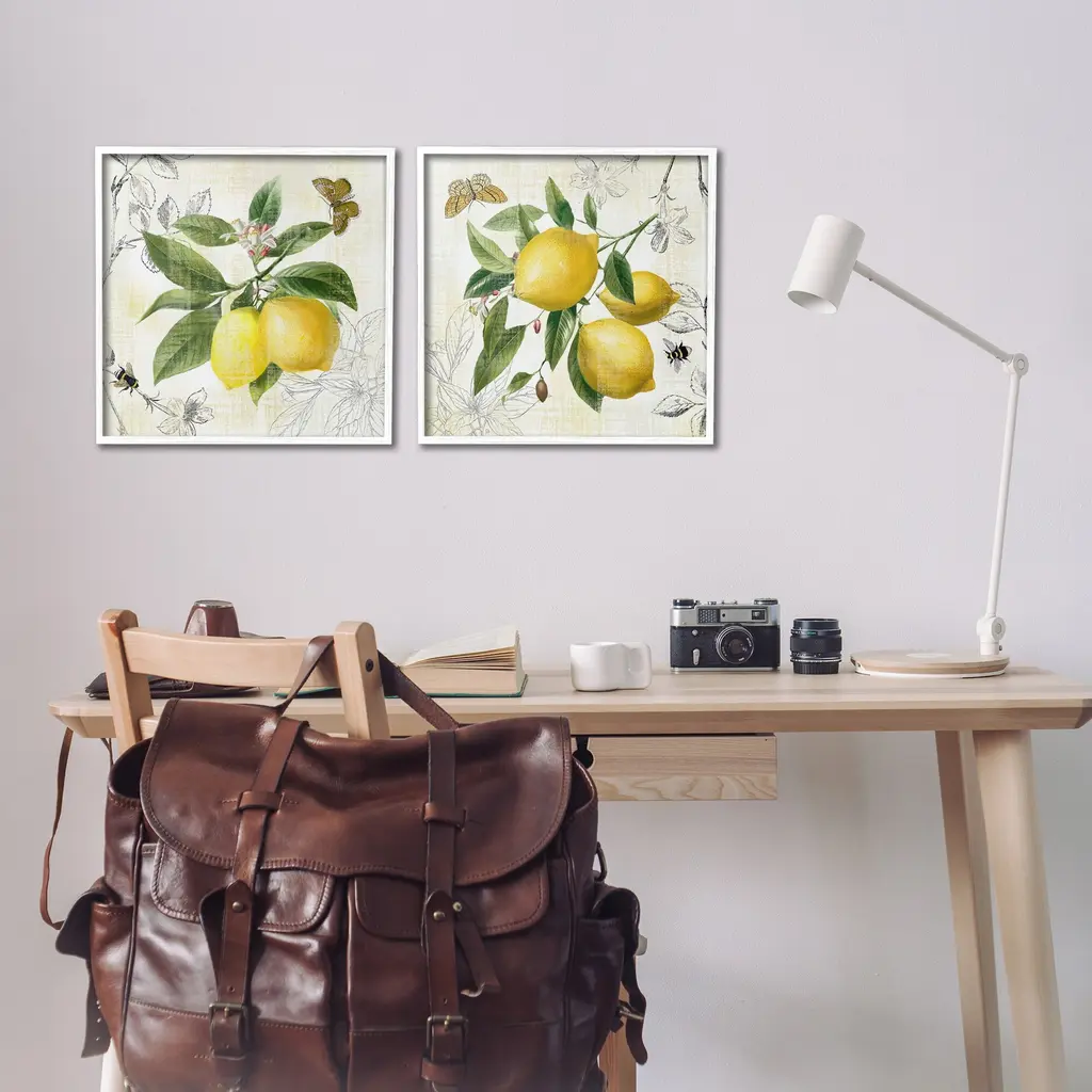 Fill any space in your home or office with our Framed Wall Art Sets. Our framed artwork is securely mounted into a 1.5-inch thick wood grain frame and ready to hang. Frames are available in three alluring styles: black, gray farmhouse and white. Stupell Wall Art is made in the USA.Features: Dimensions: 2 Piece Set, Each Panel is 12 x 1.5 x 12 FramedTwo Piece Framed Giclee Sets are available as 12"x12", 17"x17" or 24"x24" Panels. All Framed giclee Products have a 1.5" Depth.Wall Art is Ready to Hang with Hardware Free Hanging. No installation required. For Easy Set Up Lean or Layer Artwork on Shelf or Against Wall.Curated Wall Art Sets make it easy for you complete the theme for any room. Our giclée prints are carefully mounted on a durable MDF backing, and then perfectly finished in a 1.5 inch thick woodgrain frame. Mounted frame colors include black, gray farmhouse and white. Made In USA.Artwork Relates To: Citrus Fruit, Food, Fruit, Lemon, Plant, Animal, Bee, Insect, Pattern, Floral, Flower, Vintage, ButterflyDesign by Nan