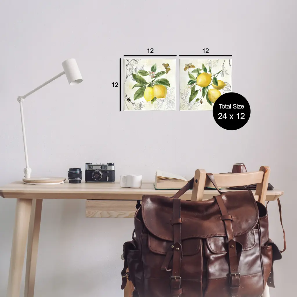 Fill any space with Stupell Wall Art Sets. Our wall plaques start as high-quality lithograph prints mounted on durable 0.5-inch thick MDF wood. Each piece is hand finished and comes with a fresh layer of white foil on the sides to give it a crisp, clean look. Plaques arrive ready to hang without installation and come with removable plastic corners to keep them from damage in transit. Stupell Wall Art is made in the USA.Features: Dimensions: 2 Piece Set, Each Panel is 12 x 0.5 x 12 InchesWall Art is Ready to Hang with Hardware Free Hanging. No Installation required. For Easy Set Up Lean or Layer Artwork on Shelf or Against Wall. Artwork is Permently Fixed into the Frame.All of our wall plaques start off as high quality lithograph prints that are then mounted on durable 0.5 inch thick MDF wood. Each piece is hand finished and comes with a fresh layer of foil on the sides to give it a crisp clean look. Made In USA.Artwork Relates To: Citrus Fruit, Food, Fruit, Lemon, Plant, Animal, Bee, Insect, Pattern, Floral, Flower, Vintage, ButterflyDesign by Nan