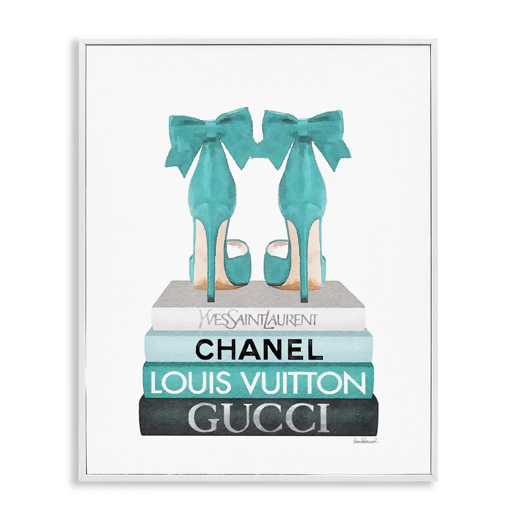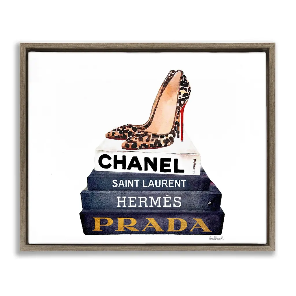 Stupell Divine Golden Fashion Purse On Glam Designer Bookstack Framed Wall Art - 24 X 30 - Black