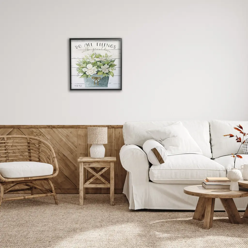 Stupell Do All Things With Great Love Floral Magnolia Pail Planked Look, 12 X 12, Design By Artist Cindy Jacobs - Multi-Color - 24 X 24 - Wood - Black