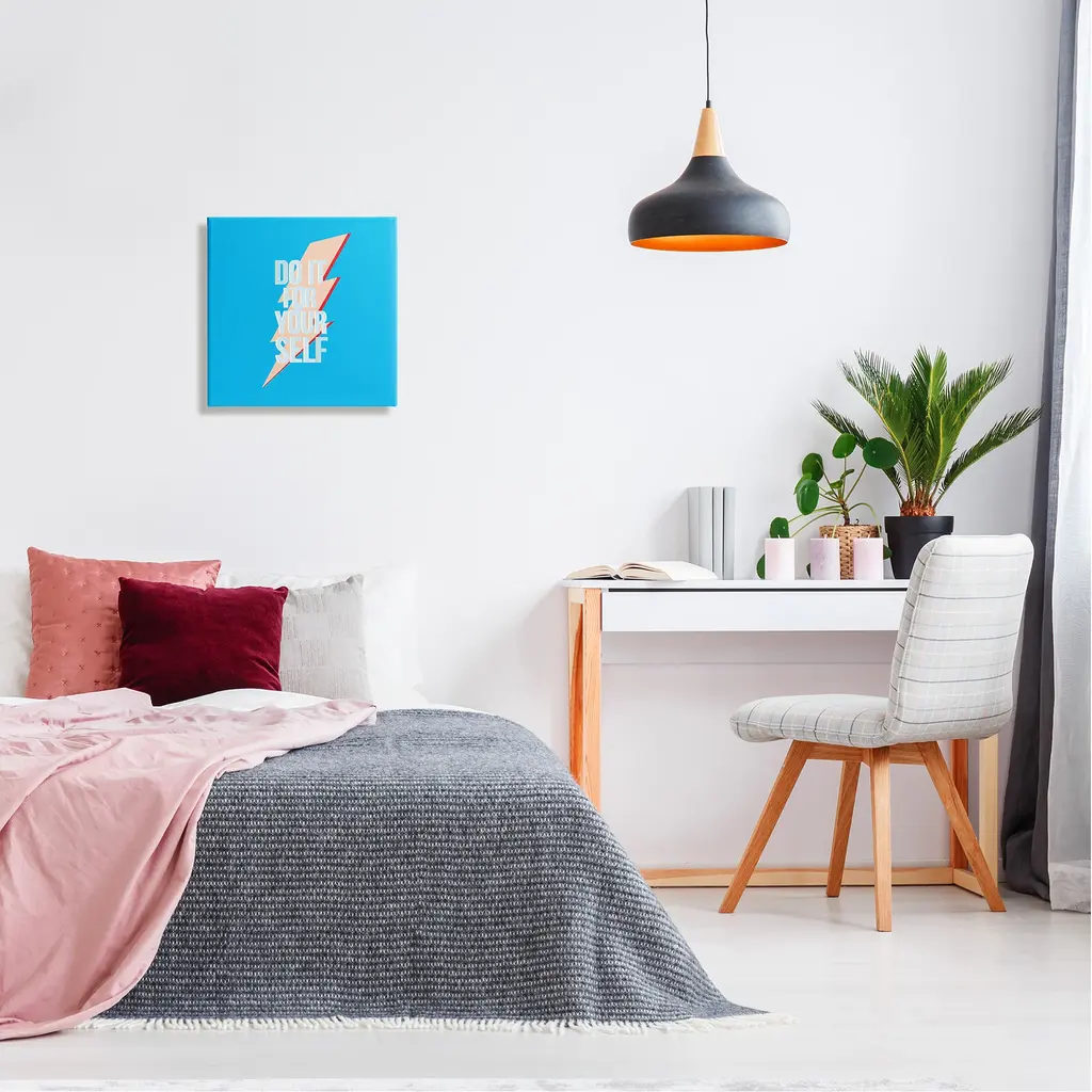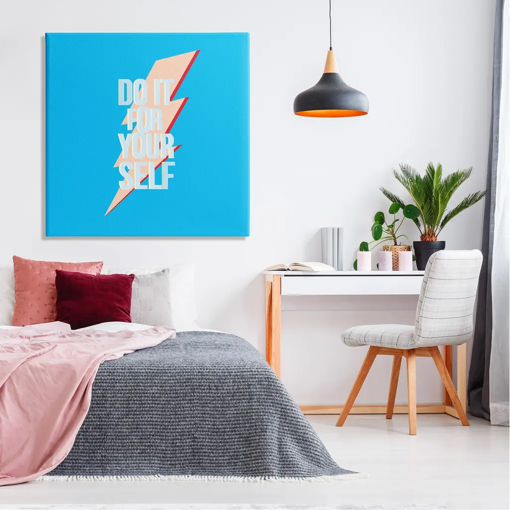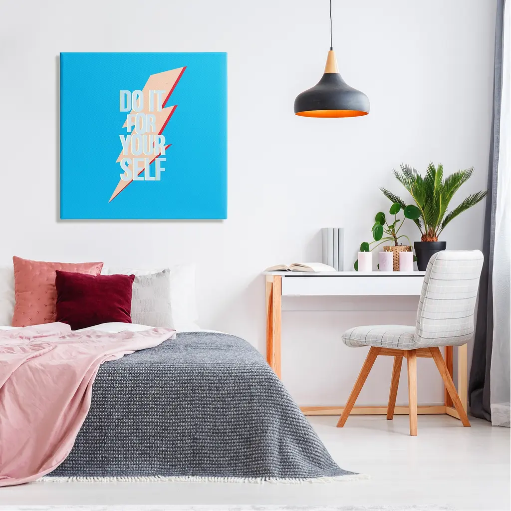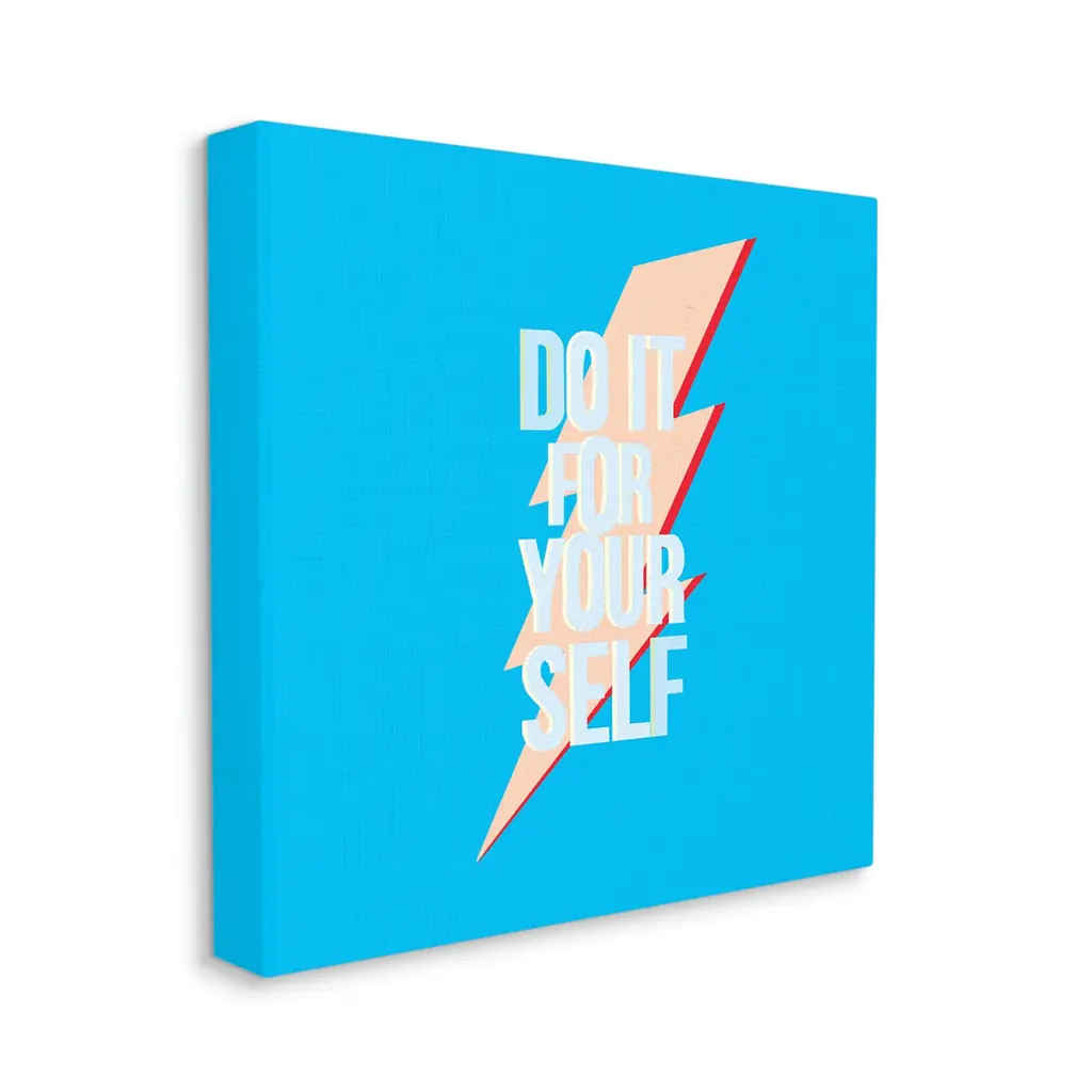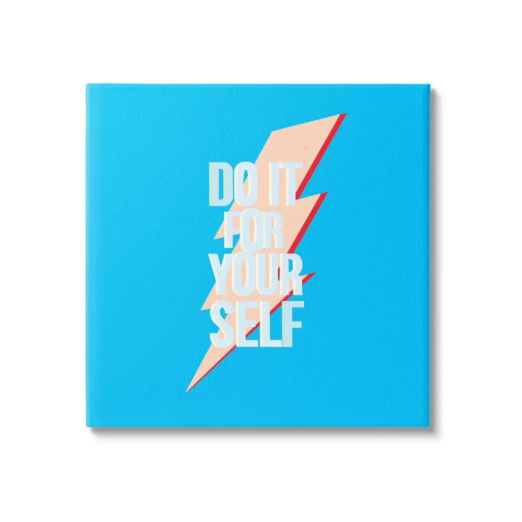 We create our stretched canvas to the highest standards. Using only the highest quality inks and canvas on Mimaki printers, we hand-cut and stretch each piece over a 1.5-inch thick wooden frame for hanging. As a result, the art comes ready to hang on the sturdy ledge with no installation required. Stupell Wall Art is made in the USA.Features: Dimensions: 17 x 1.5 x 17 InchesStretched Canvas Sizes Include Standard: 17 x 1.5 x 17 Large: 24 x 1.5 x 24 X-Large: 30 x 1.5 x 30 Oversized: 36 x 1.5 x 36Wall Art is Ready to Hang - No Installation or Hardware Needed. For Easy Set Up Lean or Layer Artwork on Shelf or Against Wall.Our stretched canvas is created with the highest standards. We use only the highest quality inks and canvas on our in house Mimaki printers, and then hand cut and stretch each piece over a 1.5 inch thick wooden frame for hanging. Made In USA.Artwork Relates To: Motivational, Inspirational, Phrase, Lighting Bolt, Do It For YourselfDesign by Ashley Singleton