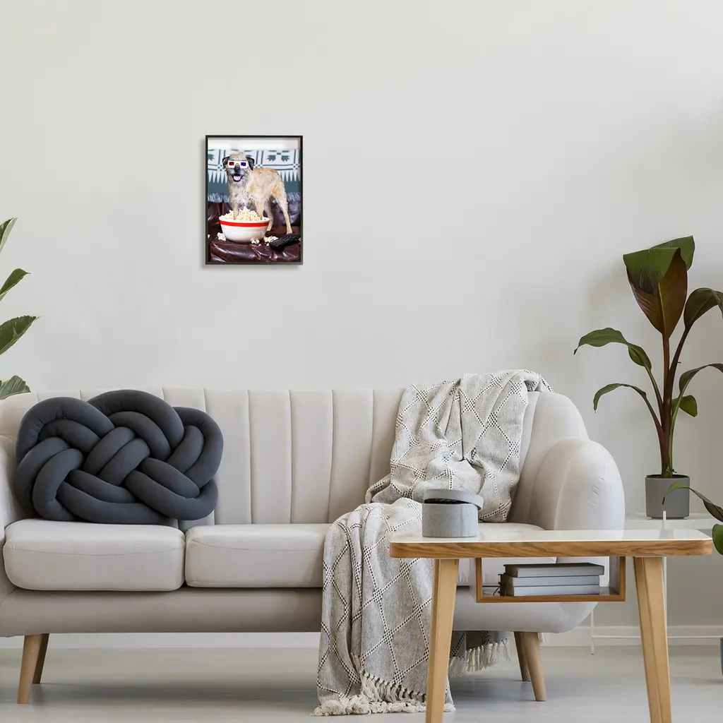 Stupell Dog 3-D Movie Night Couch Snacking Popcorn Framed Wall Art, Design By Michael Quackenbush - Multi - 11 X 14 - Black