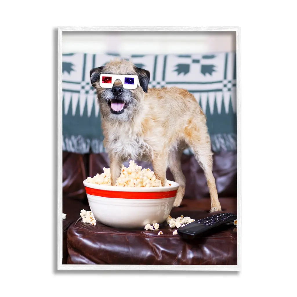 Stupell Dog 3-D Movie Night Couch Snacking Popcorn Framed Wall Art, Design By Michael Quackenbush - Multi - 16 X 20 - Grey