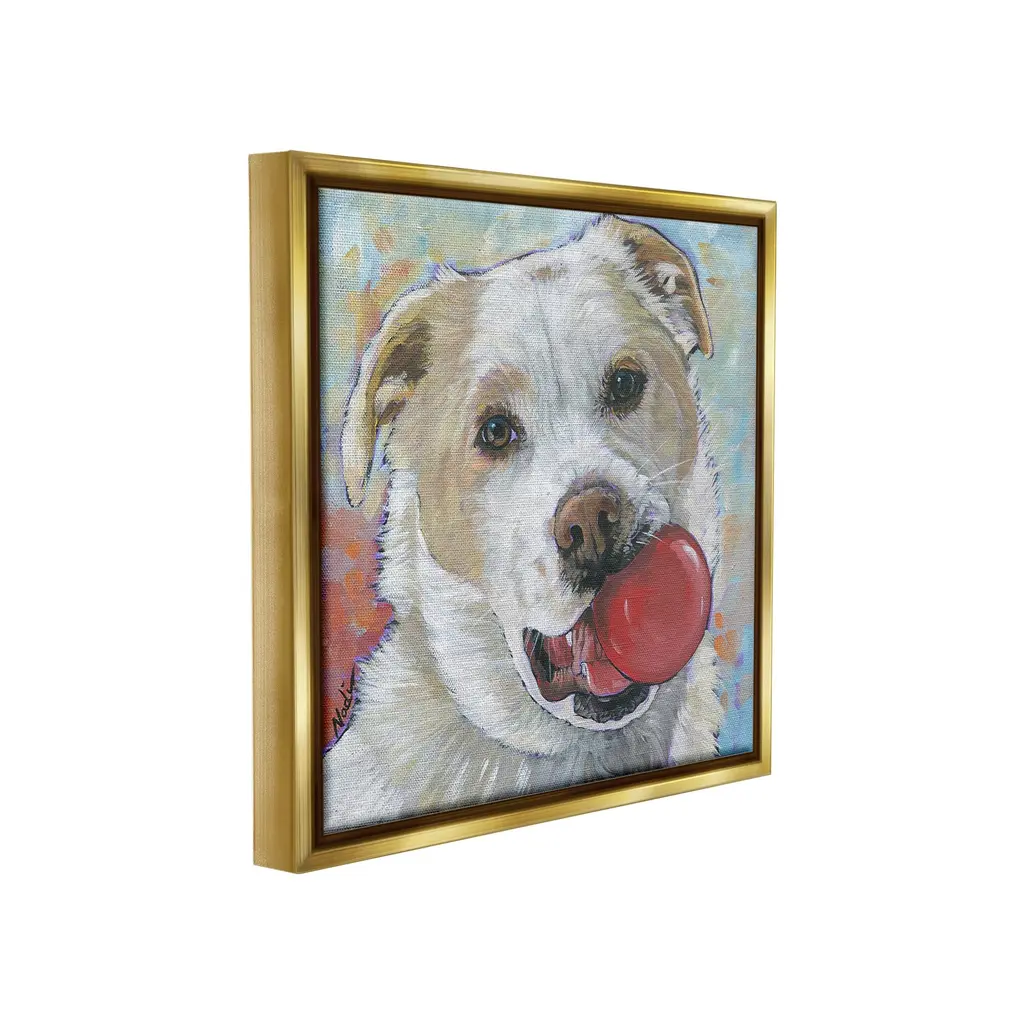 Elevate your home or office to the next level with Stupell Framed Floating Canvas Wall Art. Our premium hand-stretched canvas is mounted securely into a sturdy lightweight frame. The museum-style gap between the wrapped canvas and the box frame gives the illusion of floating artwork. Stupell Wall Art is made in the USA.Features: Dimensions: 18 x 1.7 x 18 Frame, 17 x 1.5 x 17 Canvas ArtFloating Frame Canvas Products are available in sizes 18"x18" and 25"x25". All Floating Frame Canvas Products have a 1.7" Depth.Wall Art is Ready to Hang with Hardware Free Hanging. No Installation required. For Easy Set Up Lean or Layer Artwork on Shelf or Against Wall. Artwork is Permently Fixed into the Frame.Our elevated 1.7" Thick Floating Frame is the perfect complement to our canvas style Wall Art. We use only the highest quality inks in house with industry leading printing solutions. Canvas is hand stretched over a durable wood foundation and then mounted securly into a Modern Box Frame. Made in the USA.Artwork Relates To: Animal, Canine, Dog, Pet, Ball, Toy, Portrait, PaintingDesign by Nadi Spencer