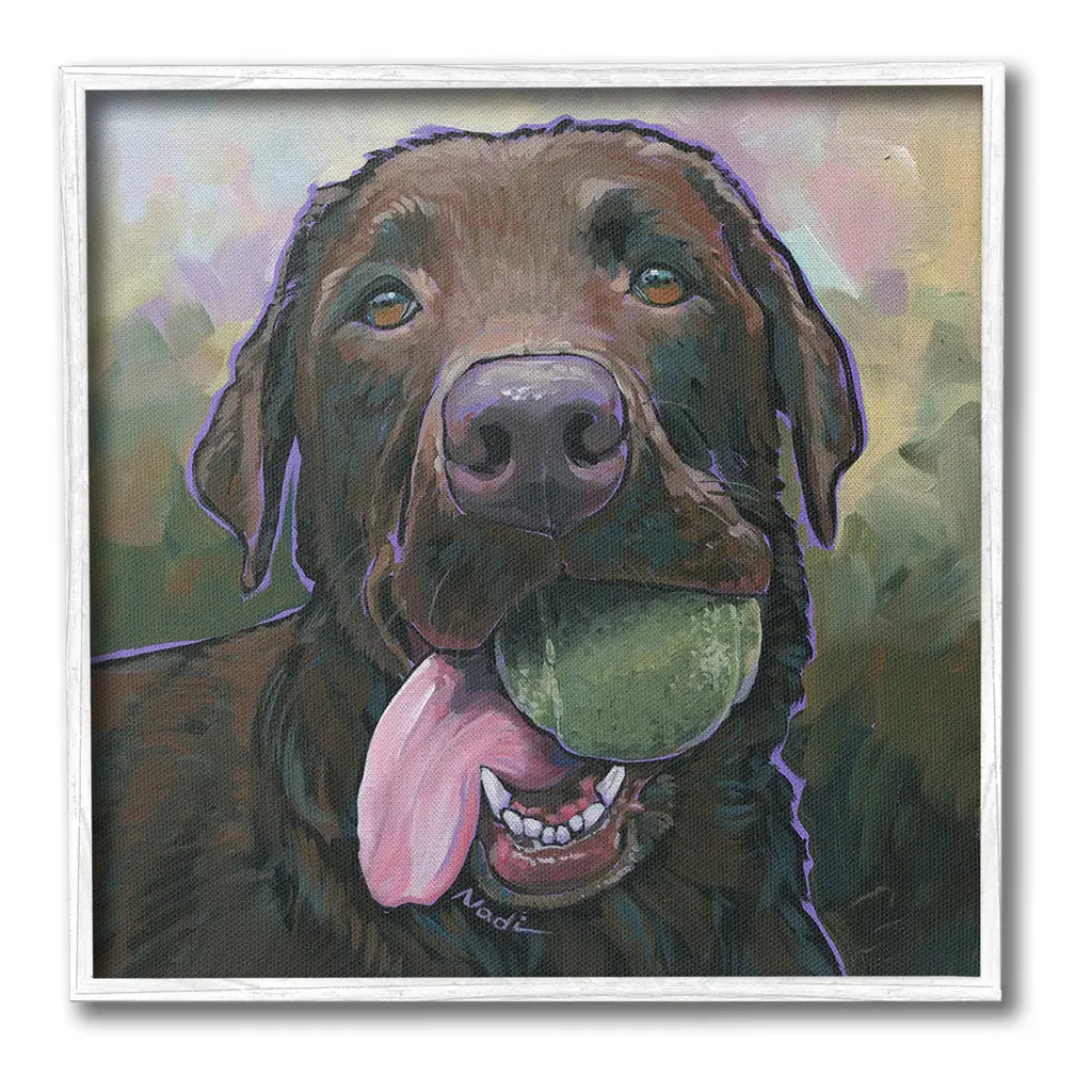 Add dimension to any room with our textured Framed Giclee Artwork. Our framed artwork is securely mounted into a 1.5-inch thick wood grain frame and ready to hang. Frames are available in three alluring styles: black, gray farmhouse and white. In addition, you should check out our oversized options if you want a statement piece. Stupell Wall Art is made in the USA.Features: Dimensions: 12 x 1.5 x 12 FramedFramed Giclee Product Sizes Include 12"x12", 17"x17", and 24"x24". Framed Giclee Products have a 1.5" Depth. Wall Art is Ready to Hang with Hardware Free Hanging. No installation required. For Easy Set Up Lean or Layer Artwork on Shelf or Against Wall.Our giclée prints are carefully mounted on a durable MDF backing, and then perfectly finished in a 1.5 inch thick woodgrain frame. Mounted frame colors include black, gray farmhouse and white. Made In USA.Artwork Relates To: Animal, Canine, Dog, Pet, Ball, Toy, Portrait, PaintingDesign by Nadi Spencer
