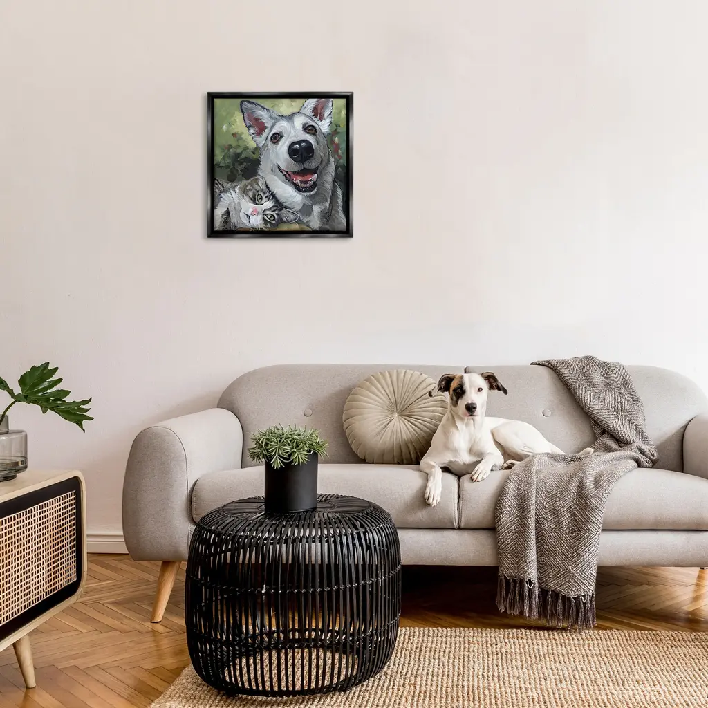 Elevate your home or office to the next level with Stupell Framed Floating Canvas Wall Art. Our premium hand-stretched canvas is mounted securely into a sturdy lightweight frame. The museum-style gap between the wrapped canvas and the box frame gives the illusion of floating artwork. Stupell Wall Art is made in the USA.Features: Dimensions: 18 x 1.7 x 18 Frame, 17 x 1.5 x 17 Canvas ArtFloating Frame Canvas Products are available in sizes 18"x18" and 25"x25". All Floating Frame Canvas Products have a 1.7" Depth.Wall Art is Ready to Hang with Hardware Free Hanging. No Installation required. For Easy Set Up Lean or Layer Artwork on Shelf or Against Wall. Artwork is Permently Fixed into the Frame.Our elevated 1.7" Thick Floating Frame is the perfect complement to our canvas style Wall Art. We use only the highest quality inks in house with industry leading printing solutions. Canvas is hand stretched over a durable wood foundation and then mounted securly into a Modern Box Frame. Made in the USA.Artwork Relates To: Animal, Canine, Dog, Pet, Portrait, Painting, CatDesign by Nadi Spencer