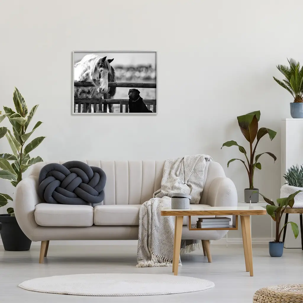 Stupell Dog & Horse Farm Animal Friends Monochrome Photography Framed Wall Art, Design By James Dobson - 30 X 24 - Grey