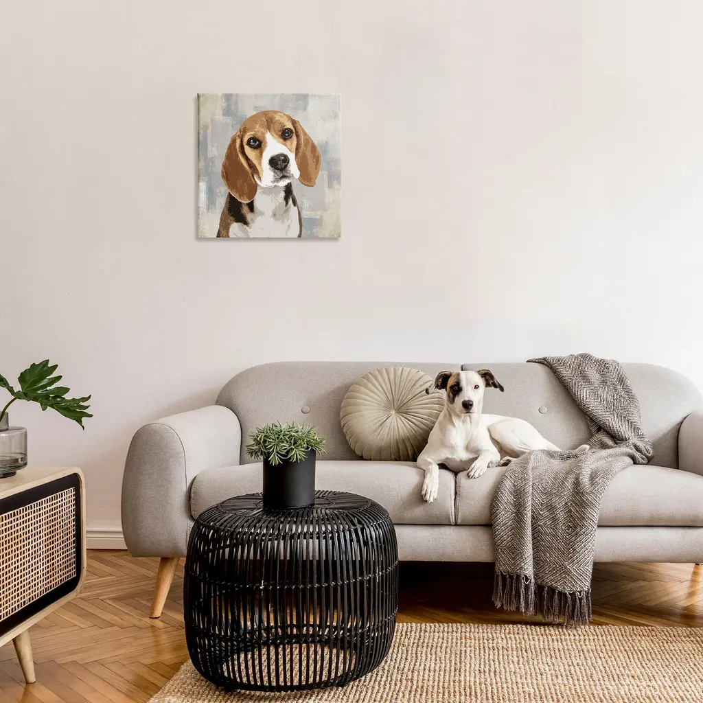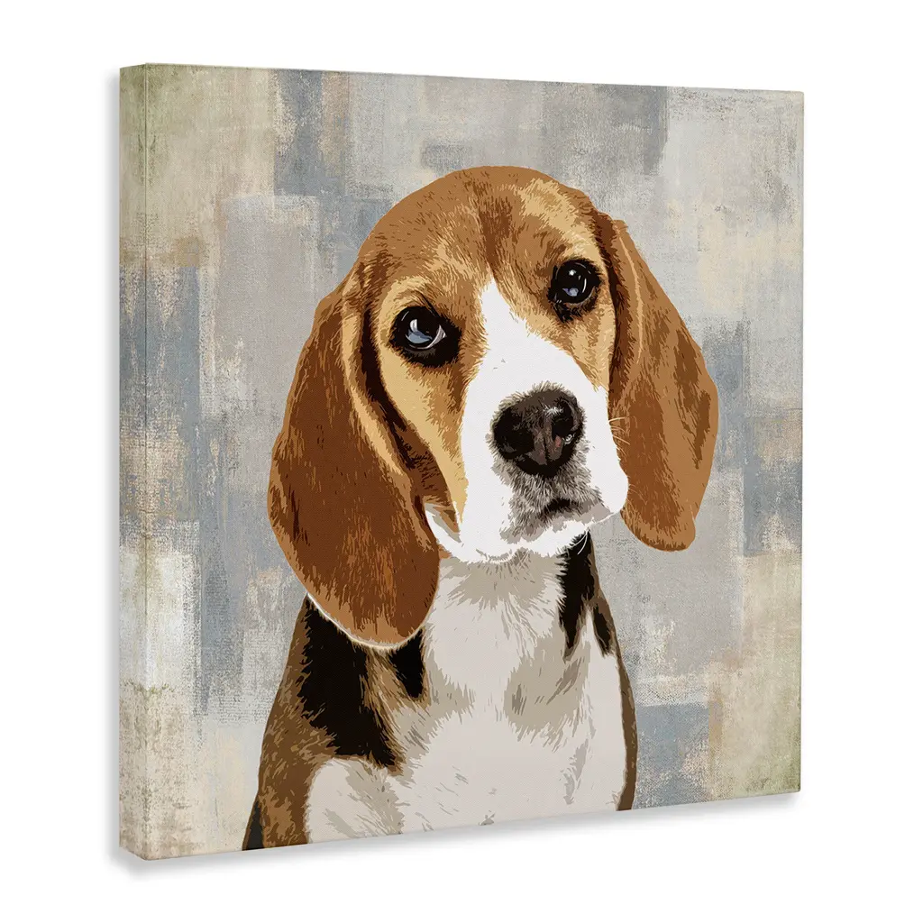 Stupell Dog Beagle Patiently Waiting Abstract Backdrop Pet Collage Canvas Wall Art - Brown - 24 X 24