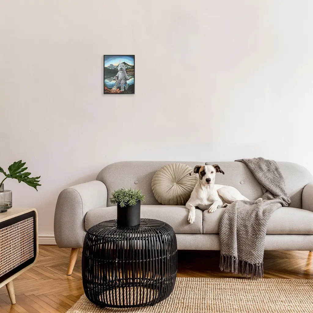 Add dimension to any room with our textured Framed Giclee Artwork. Our framed artwork is securely mounted into a 1.5-inch thick wood grain frame and ready to hang. Frames are available in three alluring styles: black, gray farmhouse and white. In addition, you should check out our oversized options if you want a statement piece. Stupell Wall Art is made in the USA.Features: Dimensions: 11 x 1.5 x 14 FramedFramed Giclee Sizes Include Standard: 11 x 1.5 x 14 Large: 16 x 1.5 x 20 Oversized: 24 x 1.5 x 30Wall Art is Ready to Hang with Hardware Free Hanging. No installation required. For Easy Set Up Lean or Layer Artwork on Shelf or Against Wall.Our giclée prints are carefully mounted on a durable MDF backing, and then perfectly finished in a 1.5 inch thick woodgrain frame. Mounted frame colors include black, gray farmhouse and white. Made In USA.Artwork Relates To: Painting, Animal, Canine, Dog, Mammal, Pet, White Dog, Terrier, Water, Nature, Fisheye, Camping, CampfireDesign by Holly Simental