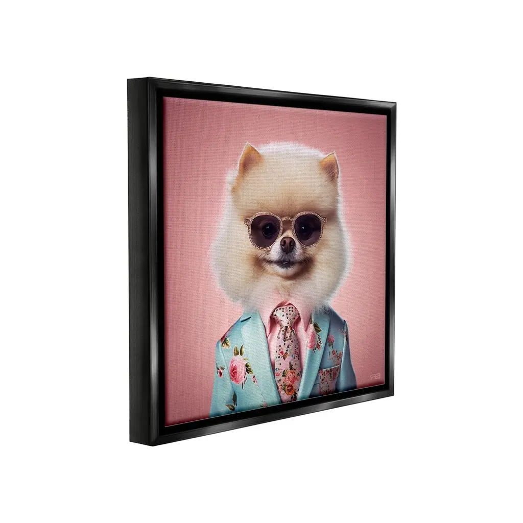 Stupell Dog In Chic Suit Framed Floater Canvas Wall Art Design By Rb - 18 X 18 - Black