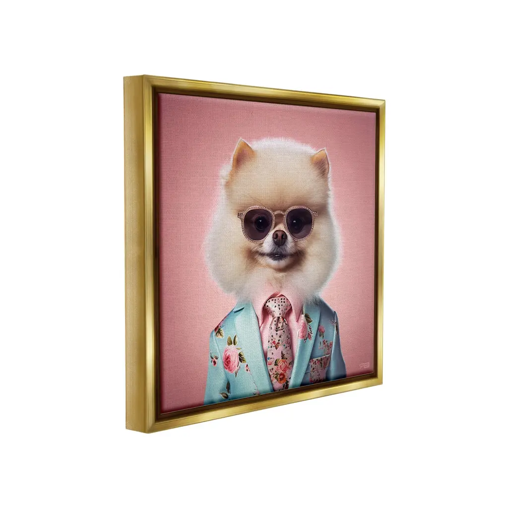Stupell Dog In Chic Suit Framed Floater Canvas Wall Art Design By Rb - 25 X 25 - Gold