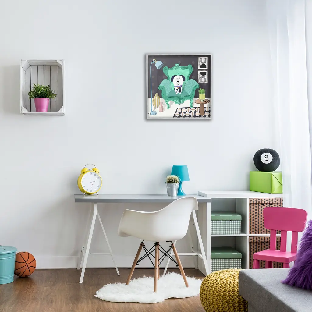 Add dimension to any room with our textured Framed Giclee Artwork. Our framed artwork is securely mounted into a 1.5-inch thick wood grain frame and ready to hang. Frames are available in three alluring styles: black, gray farmhouse and white. In addition, you should check out our oversized options if you want a statement piece. Stupell Wall Art is made in the USA.Features: Dimensions: 12 x 1.5 x 12 FramedFramed Giclee Product Sizes Include 12"x12", 17"x17", and 24"x24". Framed Giclee Products have a 1.5" Depth. Wall Art is Ready to Hang with Hardware Free Hanging. No installation required. For Easy Set Up Lean or Layer Artwork on Shelf or Against Wall.Our giclée prints are carefully mounted on a durable MDF backing, and then perfectly finished in a 1.5 inch thick woodgrain frame. Mounted frame colors include black, gray farmhouse and white. Made In USA.Artwork Relates To: Lamp, Chair, Plant, Armchair, Indoors, Animal, Pet Dog, Cartoon, VaseDesign by Carla Daly
