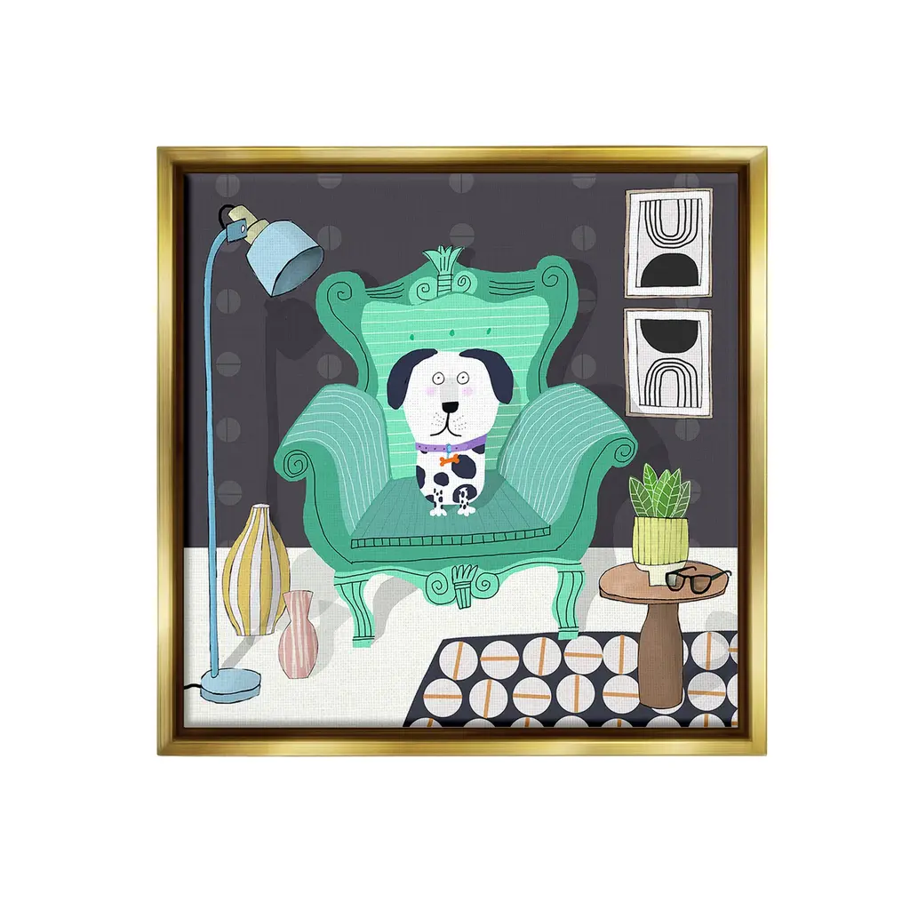 Our wall plaques start as high-quality lithograph prints mounted on durable 0.5-inch thick MDF wood. Each piece is hand finished and comes with a fresh layer of white foil on the sides to give it a crisp, clean look. Plaques arrive ready to hang without installation and come with removable plastic corners to keep them from damage in transit. Stupell Wall Art is made in the USA.Features: Dimensions: 12 x 0.5 x 12 InchesWall Art is Ready to Hang with Hardware Free Hanging. No installation required. For Easy Set Up Lean or Layer Artwork on Shelf or Against Wall.All of our wall plaques start off as high quality lithograph prints that are then mounted on durable 0.5 inch thick MDF wood. Each piece is hand finished and comes with a fresh layer of foil on the sides to give it a crisp clean look. Made In USA.Artwork Relates To: Lamp, Chair, Plant, Armchair, Indoors, Animal, Pet Dog, Cartoon, VaseDesign by Carla Daly