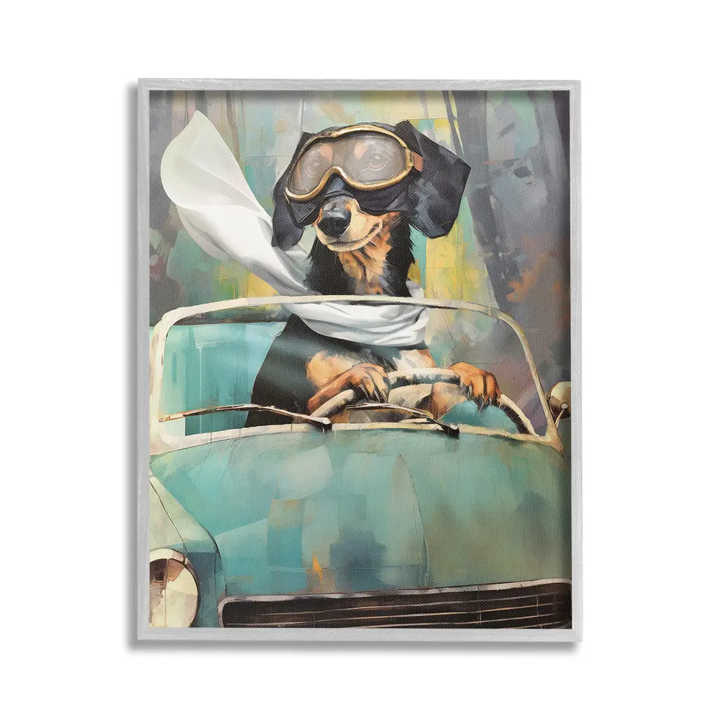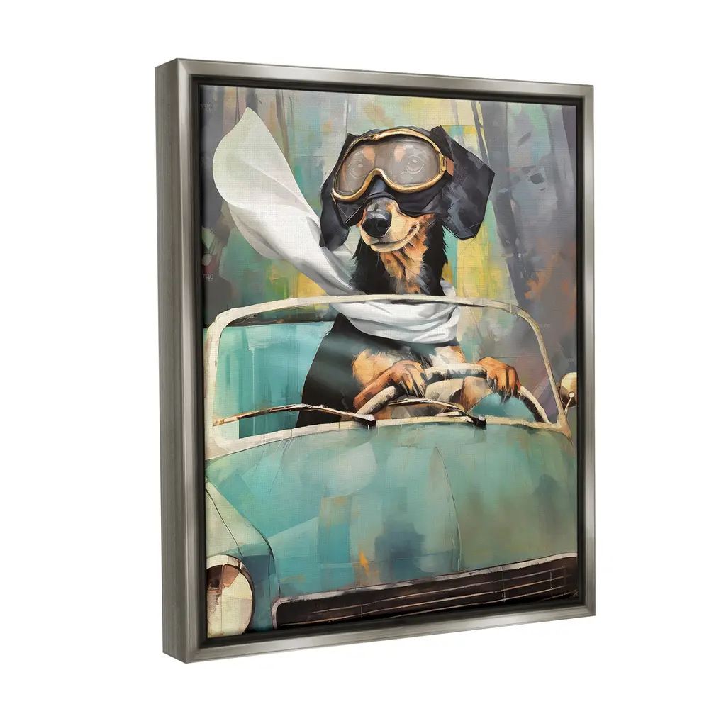 Elevate your home or office to the next level with Stupell Framed Floating Canvas Wall Art. Our premium hand-stretched canvas is mounted securely into a sturdy lightweight frame. The museum-style gap between the wrapped canvas and the box frame gives the illusion of floating artwork. Stupell Wall Art is made in the USA.Features: Dimensions: 17 x 1.7 x 21 Frame, 16 x 1.5 x 20 Canvas ArtFloating Frame Canvas Products are available in sizes 17"x21" and 25"x31". All Floating Frame Canvas Products have a 1.7" Depth.Wall Art is Ready to Hang with Hardware Free Hanging. No Installation required. For Easy Set Up Lean or Layer Artwork on Shelf or Against Wall. Artwork is Permently Fixed into the Frame.Our elevated 1.7" Thick Floating Frame is the perfect complement to our canvas style Wall Art. We use only the highest quality inks in house with industry leading printing solutions. Canvas is hand stretched over a durable wood foundation and then mounted securly into a Modern Box Frame. Made in the USA.Artwork Relates To: Animal, Pet, Dog, Humor, Funny, Car, Driving, Abstract, ModernDesign by Enrico McGarrigle