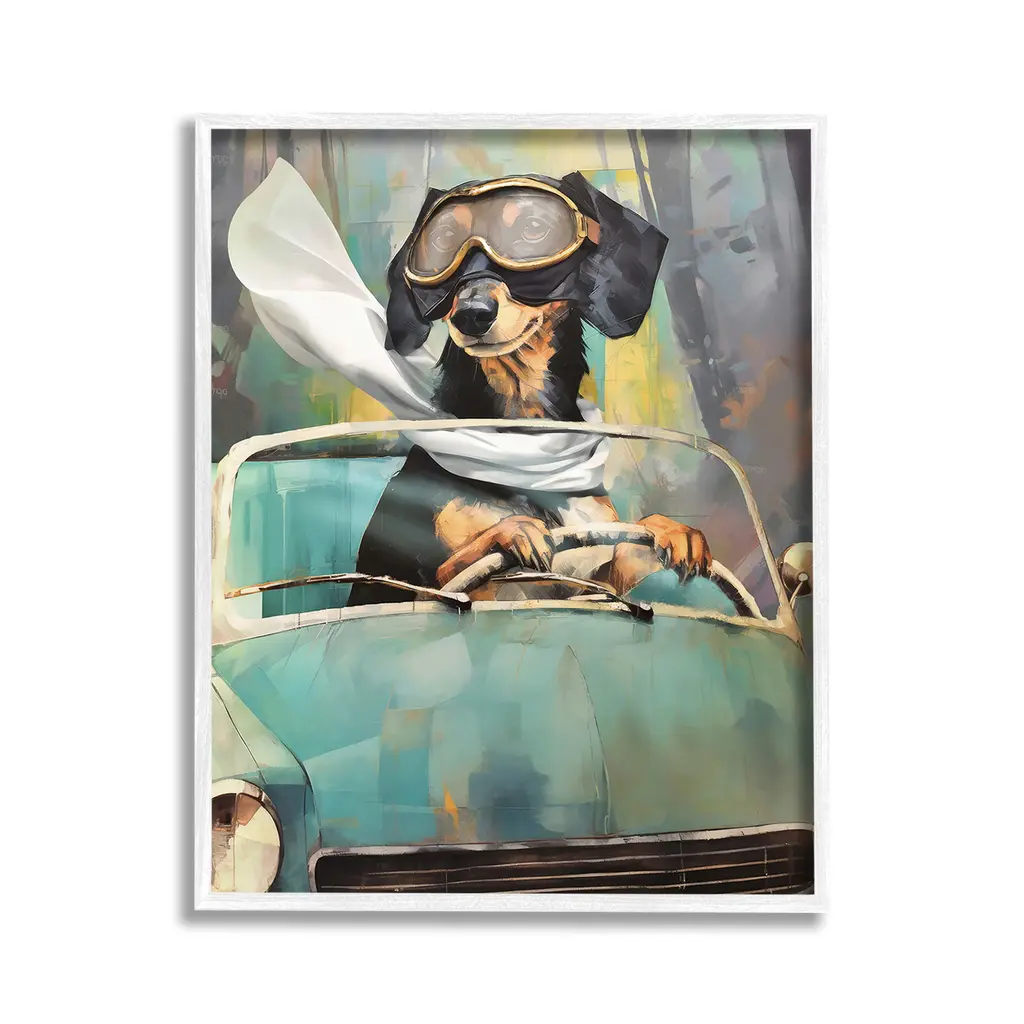 Add dimension to any room with our textured Framed Giclee Artwork. Our framed artwork is securely mounted into a 1.5-inch thick wood grain frame and ready to hang. Frames are available in three alluring styles: black, gray farmhouse and white. In addition, you should check out our oversized options if you want a statement piece. Stupell Wall Art is made in the USA.Features: Dimensions: 11 x 1.5 x 14 FramedFramed Giclee Products are available in the sizes 11"x14", 16"x20" or 24"x30". All Framed Giclee Products have a 1.5" Depth. Wall Art is Ready to Hang with Hardware Free Hanging. No installation required. For Easy Set Up Lean or Layer Artwork on Shelf or Against Wall.Our giclée prints are carefully mounted on a durable MDF backing, and then perfectly finished in a 1.5 inch thick woodgrain frame. Mounted frame colors include black, gray farmhouse and white. Made In USA.Artwork Relates To: Animal, Pet, Dog, Humor, Funny, Car, Driving, Abstract, ModernDesign by Enrico McGarrigle