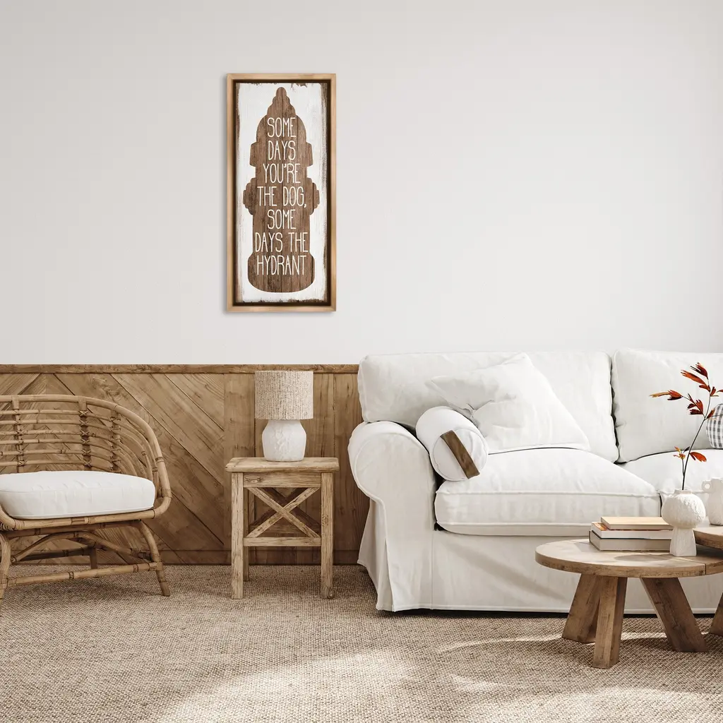 Stupell Dog Or Hydrant Funny Pet Metaphor Framed Floater Canvas Wall Art Design By Daphne Polselli - 14 X 31 - Brown