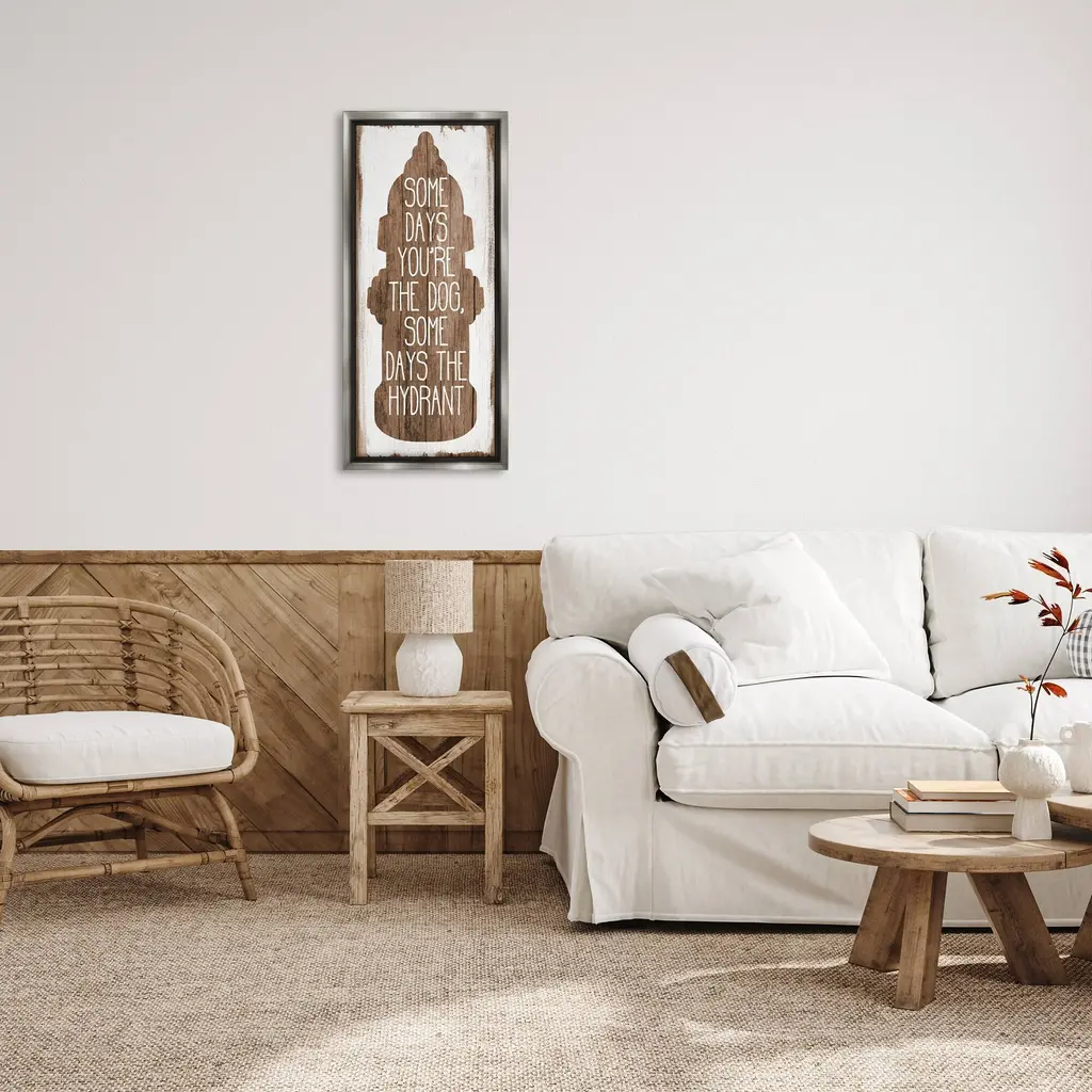 Stupell Dog Or Hydrant Funny Pet Metaphor Framed Floater Canvas Wall Art Design By Daphne Polselli - 14 X 31 - Grey
