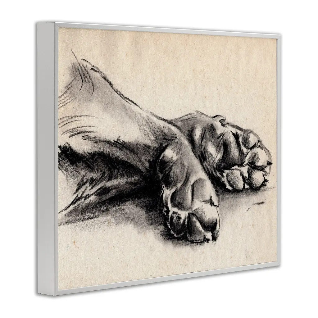 Stupell Dog Paw Charcoal Design Minimal Tan Black Framed Giclee Texturized Art By Jennifer Paxton Parker - 11 X 14 - White
