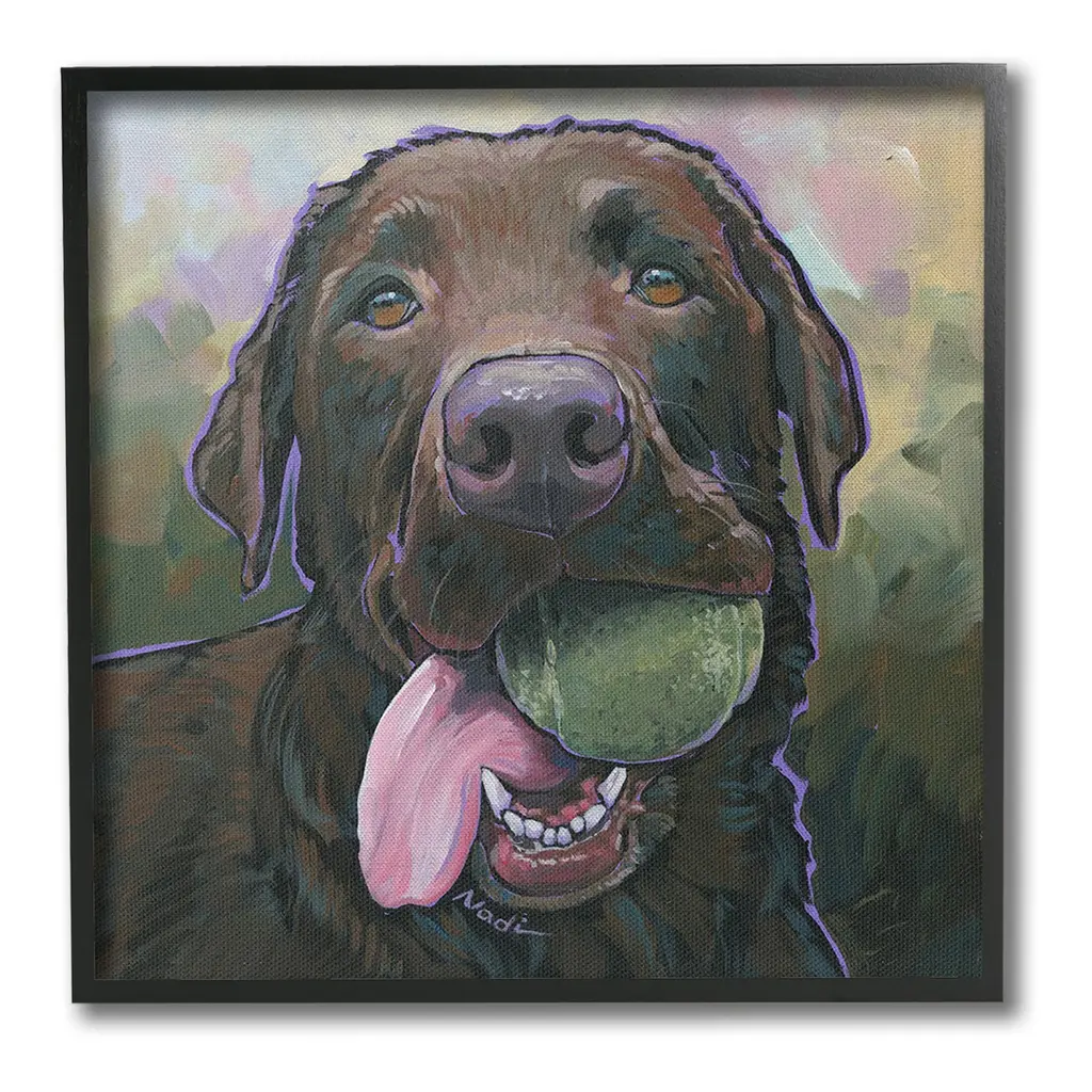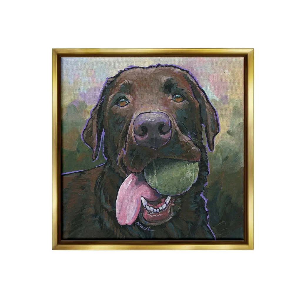 Elevate your home or office to the next level with Stupell Framed Floating Canvas Wall Art. Our premium hand-stretched canvas is mounted securely into a sturdy lightweight frame. The museum-style gap between the wrapped canvas and the box frame gives the illusion of floating artwork. Stupell Wall Art is made in the USA.Features: Dimensions: 18 x 1.7 x 18 Frame, 17 x 1.5 x 17 Canvas ArtFloating Frame Canvas Products are available in sizes 18"x18" and 25"x25". All Floating Frame Canvas Products have a 1.7" Depth.Wall Art is Ready to Hang with Hardware Free Hanging. No Installation required. For Easy Set Up Lean or Layer Artwork on Shelf or Against Wall. Artwork is Permently Fixed into the Frame.Our elevated 1.7" Thick Floating Frame is the perfect complement to our canvas style Wall Art. We use only the highest quality inks in house with industry leading printing solutions. Canvas is hand stretched over a durable wood foundation and then mounted securly into a Modern Box Frame. Made in the USA.Artwork Relates To: Animal, Canine, Dog, Labrador Retriever, Pet, Ball, Sport, Tennis BallDesign by Nadi Spencer