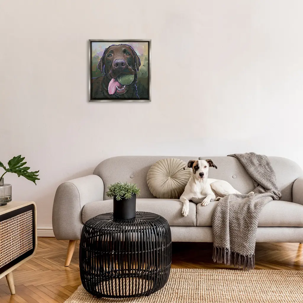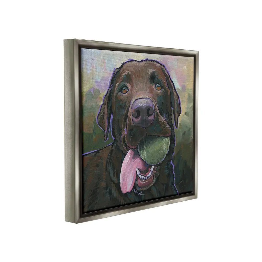 Elevate your home or office to the next level with Stupell Framed Floating Canvas Wall Art. Our premium hand-stretched canvas is mounted securely into a sturdy lightweight frame. The museum-style gap between the wrapped canvas and the box frame gives the illusion of floating artwork. Stupell Wall Art is made in the USA.Features: Dimensions: 18 x 1.7 x 18 Frame, 17 x 1.5 x 17 Canvas ArtFloating Frame Canvas Products are available in sizes 18"x18" and 25"x25". All Floating Frame Canvas Products have a 1.7" Depth.Wall Art is Ready to Hang with Hardware Free Hanging. No Installation required. For Easy Set Up Lean or Layer Artwork on Shelf or Against Wall. Artwork is Permently Fixed into the Frame.Our elevated 1.7" Thick Floating Frame is the perfect complement to our canvas style Wall Art. We use only the highest quality inks in house with industry leading printing solutions. Canvas is hand stretched over a durable wood foundation and then mounted securly into a Modern Box Frame. Made in the USA.Artwork Relates To: Animal, Canine, Dog, Labrador Retriever, Pet, Ball, Sport, Tennis BallDesign by Nadi Spencer