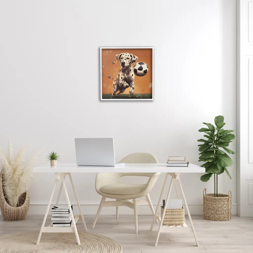 Add dimension to any room with our textured Framed Giclee Artwork. Our framed artwork is securely mounted into a 1.5-inch thick wood grain frame and ready to hang. Frames are available in three alluring styles: black, gray farmhouse and white. In addition, you should check out our oversized options if you want a statement piece. Stupell Wall Art is made in the USA.Features: Dimensions: 12 x 1.5 x 12 FramedFramed Giclee Product Sizes Include 12"x12", 17"x17", and 24"x24". Framed Giclee Products have a 1.5" Depth. Wall Art is Ready to Hang with Hardware Free Hanging. No installation required. For Easy Set Up Lean or Layer Artwork on Shelf or Against Wall.Our giclée prints are carefully mounted on a durable MDF backing, and then perfectly finished in a 1.5 inch thick woodgrain frame. Mounted frame colors include black, gray farmhouse and white. Made In USA.Artwork Relates To: Football, Soccer, Soccer Ball, Sport, Animal, Canine, Dog, Mammal, Pet, Dalmatian, PuppyDesign by Lazar Studio