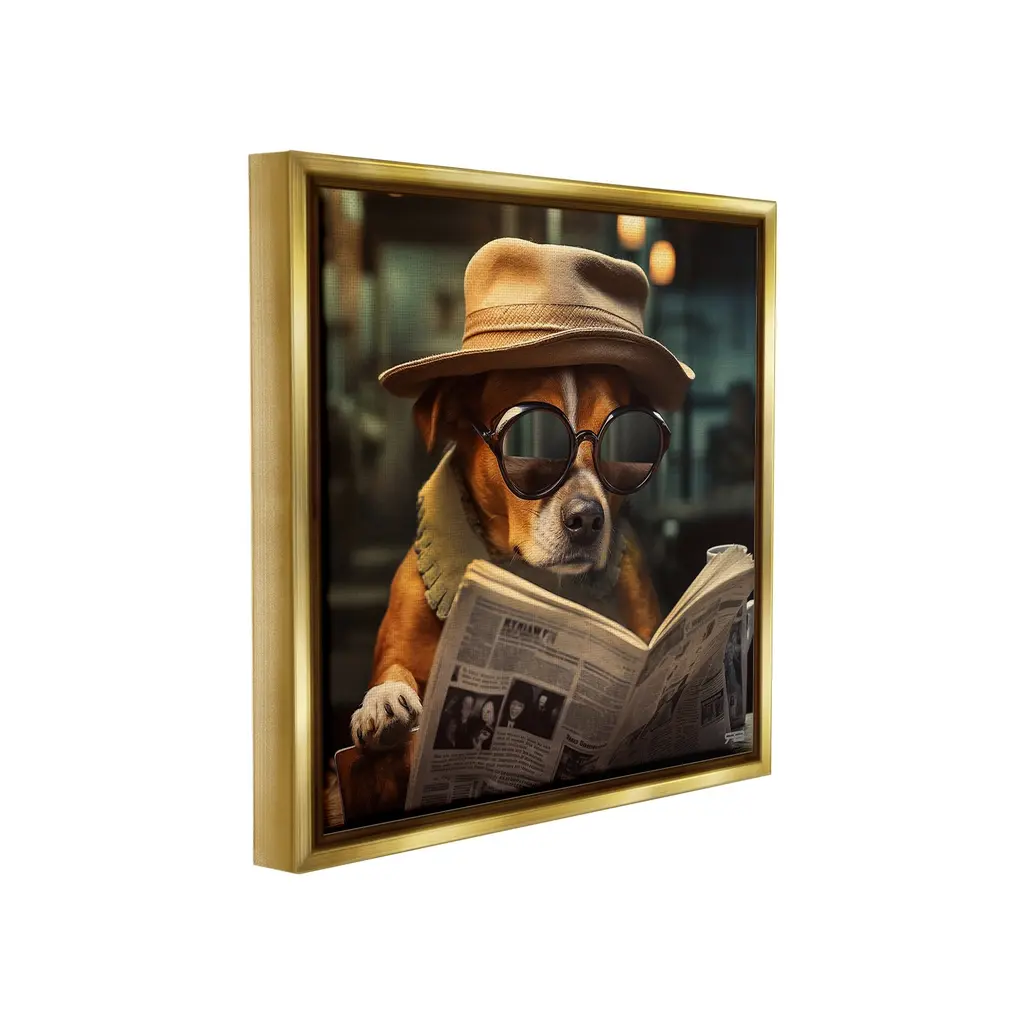 Elevate your home or office to the next level with Stupell Framed Floating Canvas Wall Art. Our premium hand-stretched canvas is mounted securely into a sturdy lightweight frame. The museum-style gap between the wrapped canvas and the box frame gives the illusion of floating artwork. Stupell Wall Art is made in the USA.Features: Dimensions: 18 x 1.7 x 18 Frame, 17 x 1.5 x 17 Canvas ArtFloating Frame Canvas Products are available in sizes 18"x18" and 25"x25". All Floating Frame Canvas Products have a 1.7" Depth.Wall Art is Ready to Hang with Hardware Free Hanging. No Installation required. For Easy Set Up Lean or Layer Artwork on Shelf or Against Wall. Artwork is Permently Fixed into the Frame.Our elevated 1.7" Thick Floating Frame is the perfect complement to our canvas style Wall Art. We use only the highest quality inks in house with industry leading printing solutions. Canvas is hand stretched over a durable wood foundation and then mounted securly into a Modern Box Frame. Made in the USA.Artwork Relates To: Reading, Animal, Canine, Dog, Mammal, Pet, Sunglasses, NewspaperDesign by RB