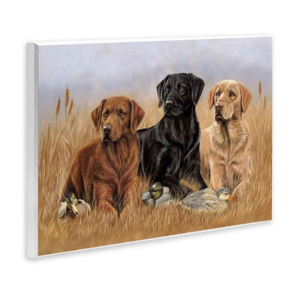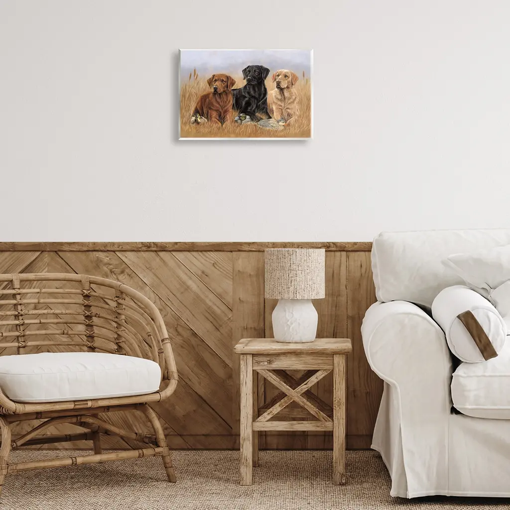 Our wall plaques start as high-quality lithograph prints mounted on durable 0.5-inch thick MDF wood. Each piece is hand finished and comes with a fresh layer of white foil on the sides to give it a crisp, clean look. Plaques arrive ready to hang without installation and come with removable plastic corners to keep them from damage in transit. Stupell Wall Art is made in the USA.Features: Dimensions: 15 x 0.5 x 10 InchesWall Plaque Product Sizes Include 15"x10" and 19"x13". All wall plaque products have a 0.5" Depth. Wall Art is Ready to Hang with Hardware Free Hanging. No installation required. For Easy Set Up Lean or Layer Artwork on Shelf or Against Wall.All of our wall plaques start off as high quality lithograph prints that are then mounted on durable 0.5 inch thick MDF wood. Each piece is hand finished and comes with a fresh layer of foil on the sides to give it a crisp clean look. Made In USA.Artwork Relates To: Animal, Canine, Dog, Mammal, Pet, Labrador Retriever, Bird, Puppy, Pointer, DuckDesign by Victoria Schultz
