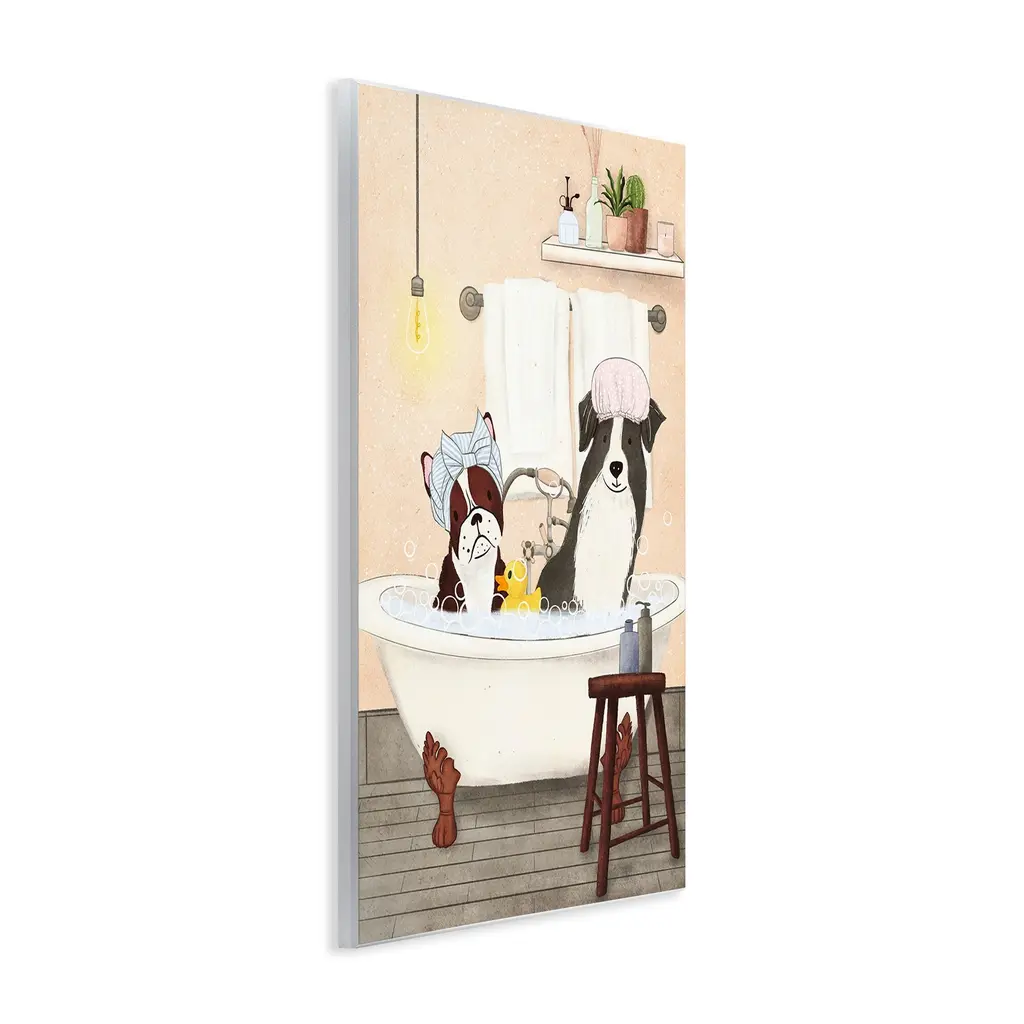 Our wall plaques start as high-quality lithograph prints mounted on durable 0.5-inch thick MDF wood. Each piece is hand finished and comes with a fresh layer of white foil on the sides to give it a crisp, clean look. Plaques arrive ready to hang without installation and come with removable plastic corners to keep them from damage in transit. Stupell Wall Art is made in the USA.Features: Dimensions: 10 x 0.5 x 15 InchesWall Plaque Product Sizes Include 10"x15" and 13"x19". All wall plaque products have a 0.5" Depth. Wall Art is Ready to Hang with Hardware Free Hanging. No installation required. For Easy Set Up Lean or Layer Artwork on Shelf or Against Wall.All of our wall plaques start off as high quality lithograph prints that are then mounted on durable 0.5 inch thick MDF wood. Each piece is hand finished and comes with a fresh layer of foil on the sides to give it a crisp clean look. Made In USA.Artwork Relates To: Bathroom, Bathtub, Tub, Bath, Animal, Pet, DogDesign by JJ Design House, LLC.
