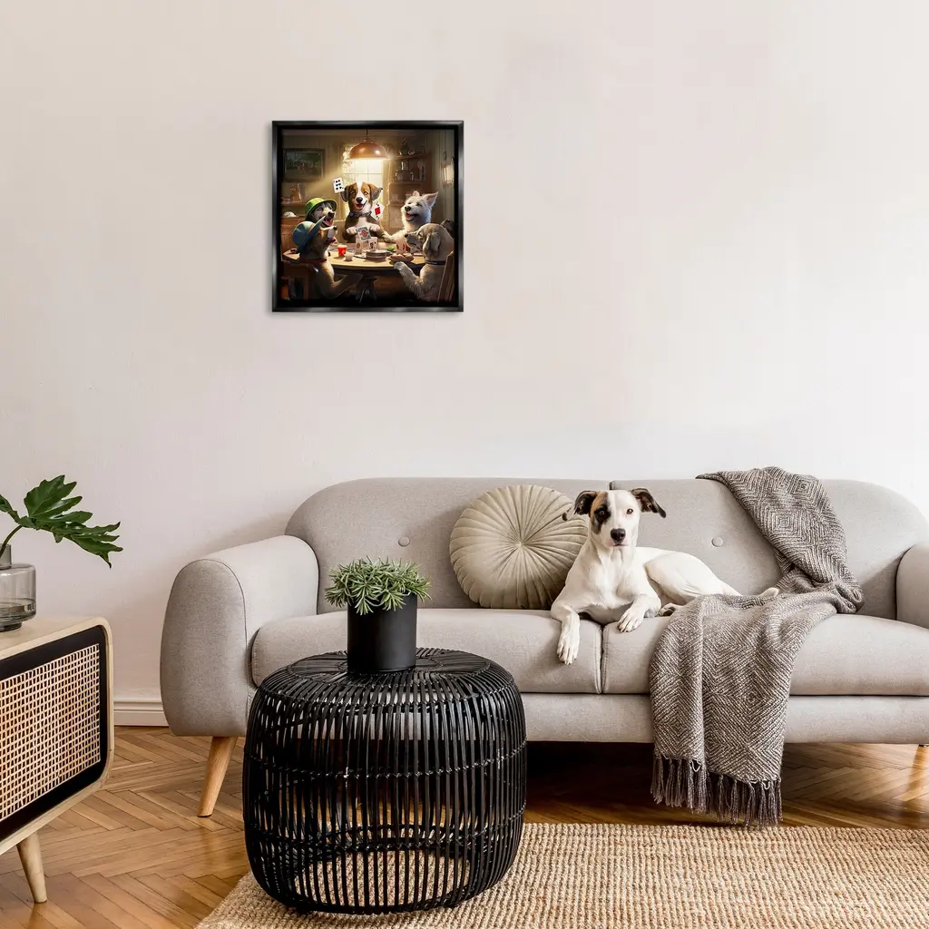 Elevate your home or office to the next level with Stupell Framed Floating Canvas Wall Art. Our premium hand-stretched canvas is mounted securely into a sturdy lightweight frame. The museum-style gap between the wrapped canvas and the box frame gives the illusion of floating artwork. Stupell Wall Art is made in the USA.Features: Dimensions: 18 x 1.7 x 18 Frame, 17 x 1.5 x 17 Canvas ArtFloating Frame Canvas Products are available in sizes 18"x18" and 25"x25". All Floating Frame Canvas Products have a 1.7" Depth.Wall Art is Ready to Hang with Hardware Free Hanging. No Installation required. For Easy Set Up Lean or Layer Artwork on Shelf or Against Wall. Artwork is Permently Fixed into the Frame.Our elevated 1.7" Thick Floating Frame is the perfect complement to our canvas style Wall Art. We use only the highest quality inks in house with industry leading printing solutions. Canvas is hand stretched over a durable wood foundation and then mounted securly into a Modern Box Frame. Made in the USA.Artwork Relates To: Fun, Animal, Canine, Dog, Mammal, Pet, Humor, Funny, Cards, Game, Magic TrickDesign by Jim Baldwin