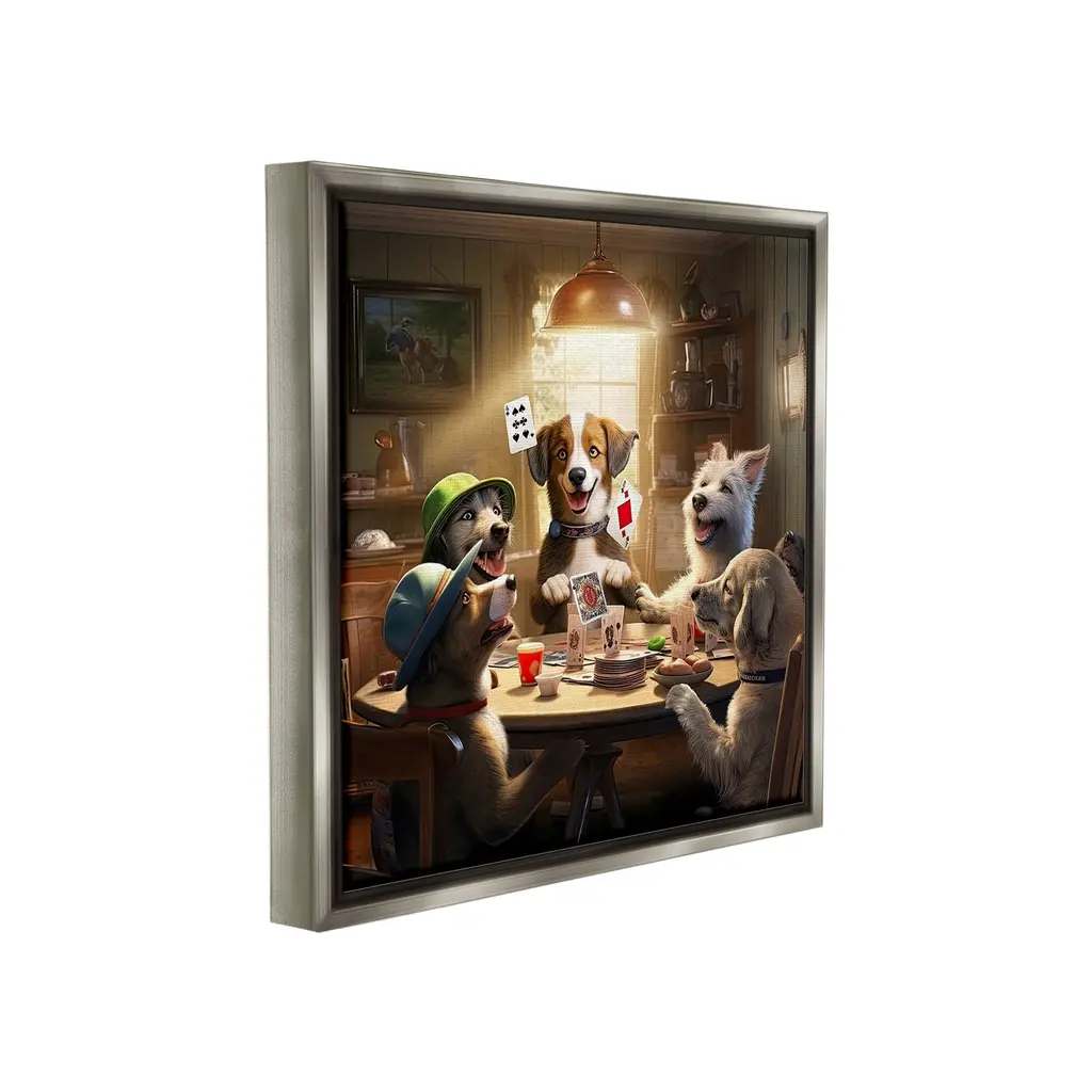 Elevate your home or office to the next level with Stupell Framed Floating Canvas Wall Art. Our premium hand-stretched canvas is mounted securely into a sturdy lightweight frame. The museum-style gap between the wrapped canvas and the box frame gives the illusion of floating artwork. Stupell Wall Art is made in the USA.Features: Dimensions: 18 x 1.7 x 18 Frame, 17 x 1.5 x 17 Canvas ArtFloating Frame Canvas Products are available in sizes 18"x18" and 25"x25". All Floating Frame Canvas Products have a 1.7" Depth.Wall Art is Ready to Hang with Hardware Free Hanging. No Installation required. For Easy Set Up Lean or Layer Artwork on Shelf or Against Wall. Artwork is Permently Fixed into the Frame.Our elevated 1.7" Thick Floating Frame is the perfect complement to our canvas style Wall Art. We use only the highest quality inks in house with industry leading printing solutions. Canvas is hand stretched over a durable wood foundation and then mounted securly into a Modern Box Frame. Made in the USA.Artwork Relates To: Fun, Animal, Canine, Dog, Mammal, Pet, Humor, Funny, Cards, Game, Magic TrickDesign by Jim Baldwin