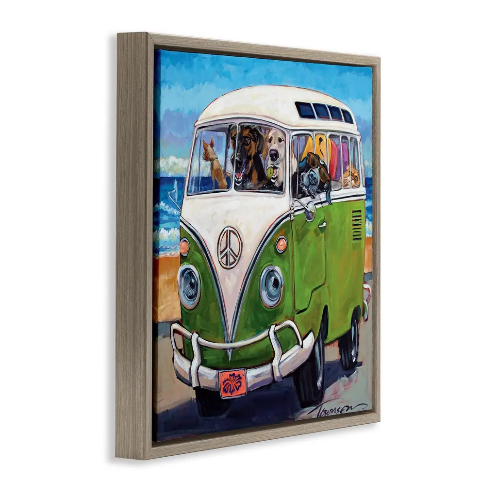 Stupell Dogs Driving Retro Van Framed Floater Canvas Wall Art Design By Cr Townsend - 18 X 18 - Brown