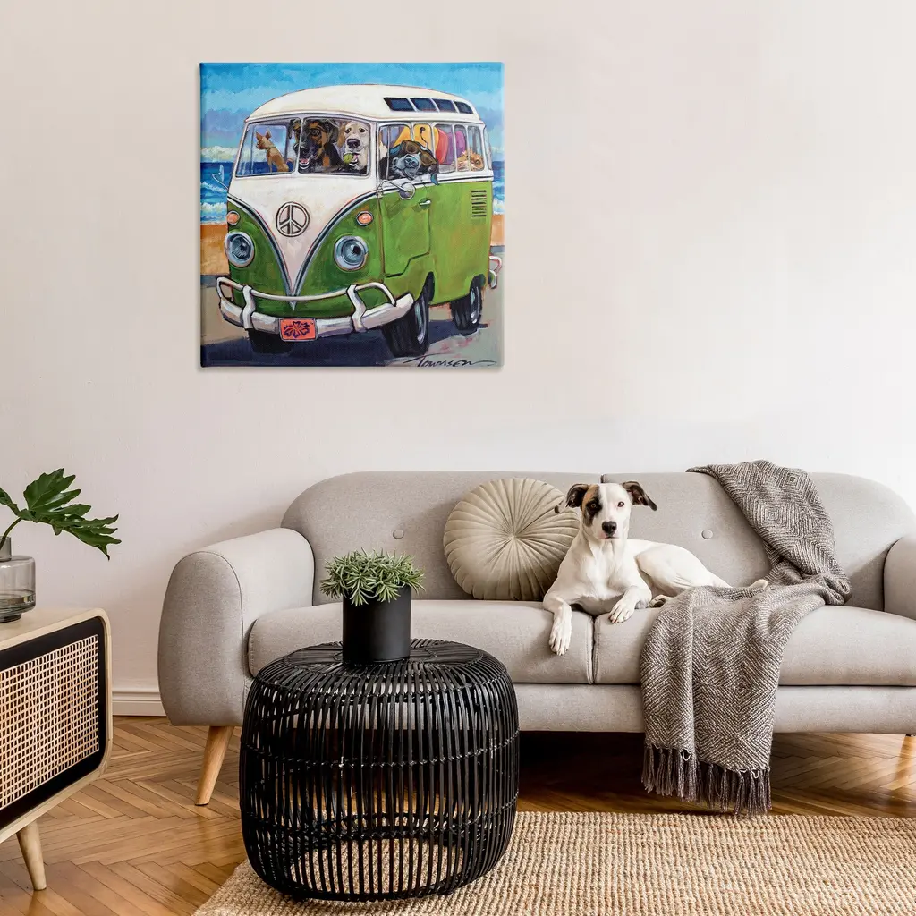 Stupell Dogs Driving Retro Van Summer Beach Trip Canvas Wall Art - 36 X 36